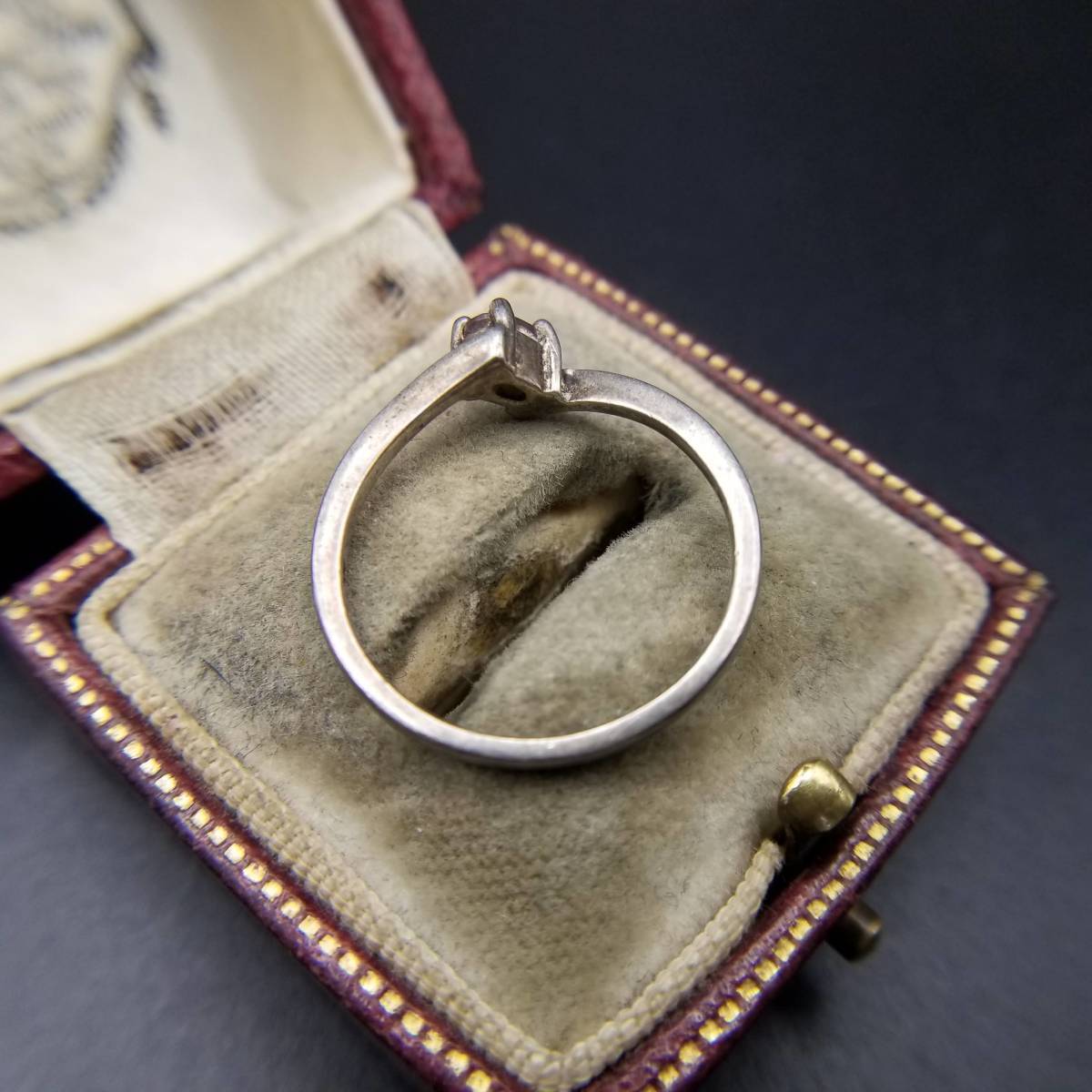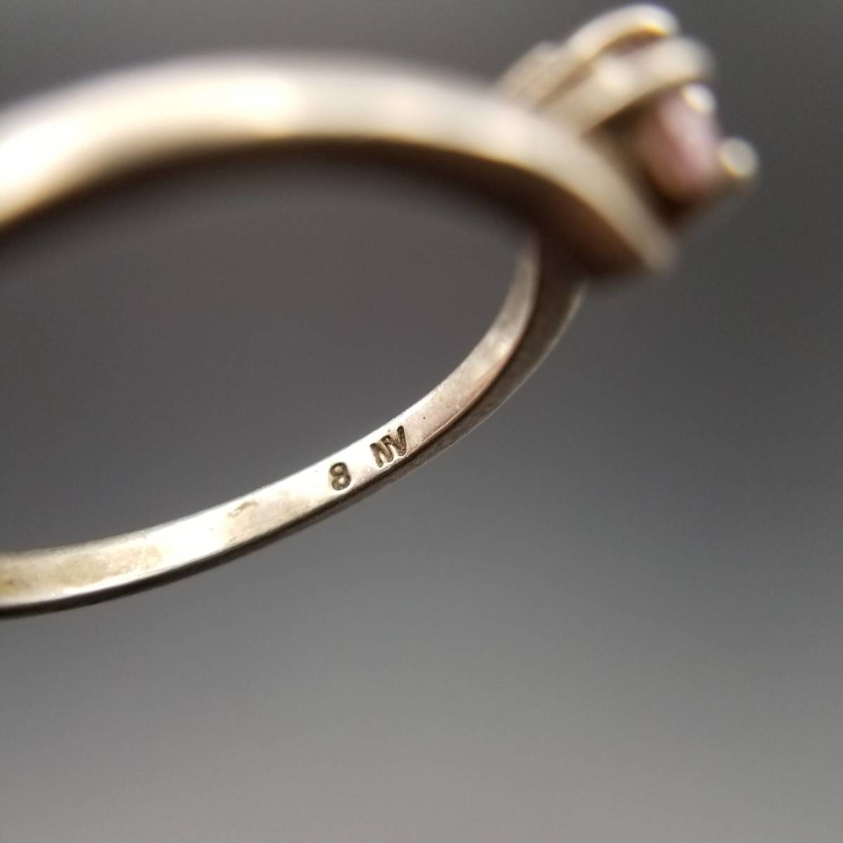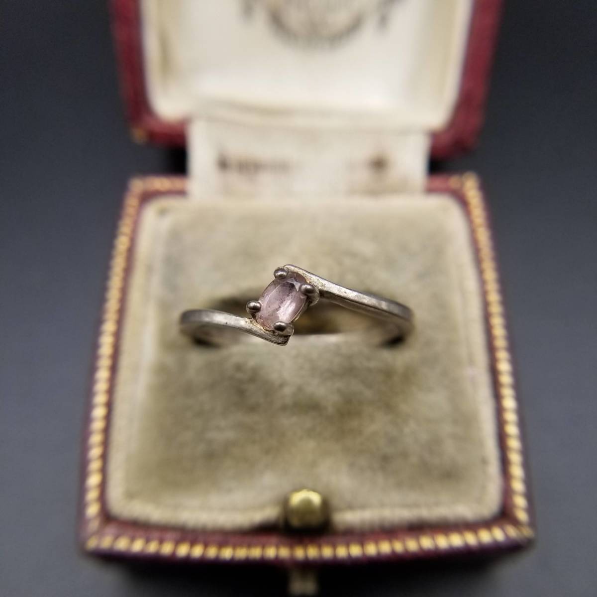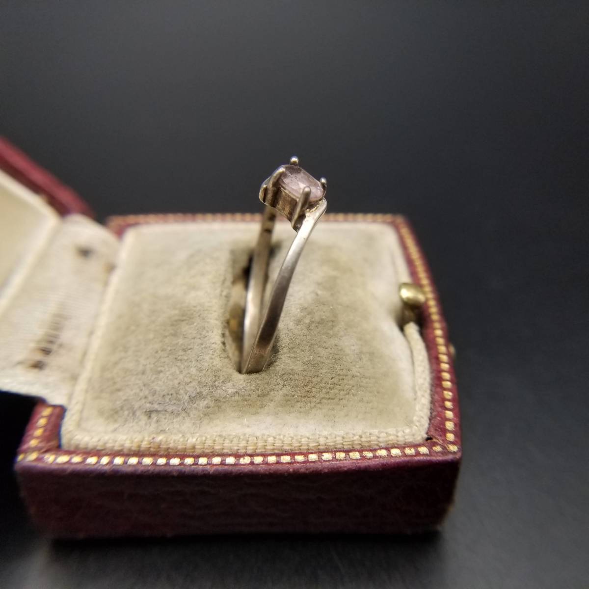 アメジストガラス オーバル 挟み 925 シルバー ヴィンテージ リング 銀 指輪 レトロ 華奢バンド ミニマル 大きいサイズ 5-Y①-③