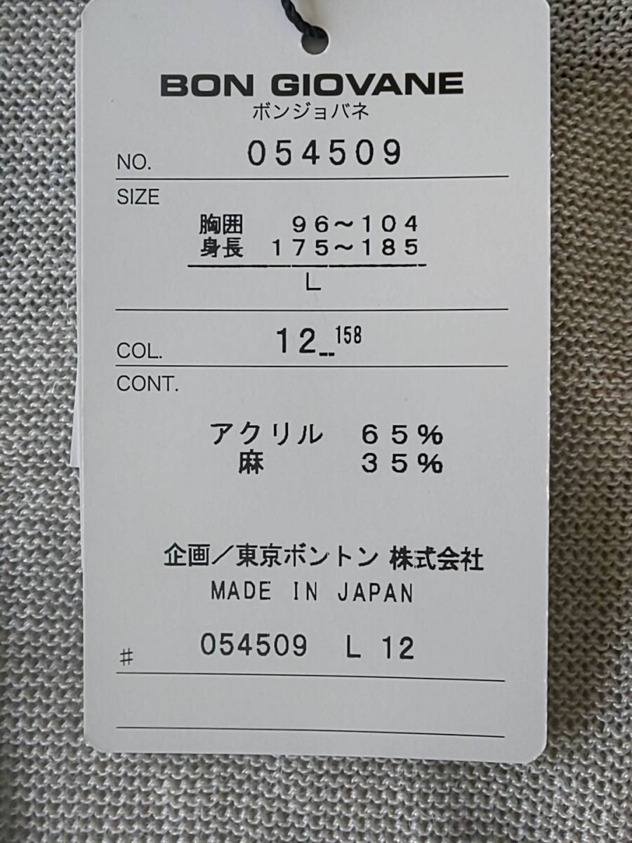 BON GIOVANE ボンジョバネ 新品 SALE 50%OFF 半額 送料無料 春物 前開きベスト L ゆったり目 ビジネス カジュアル ゴルフ 日本製 054509-12