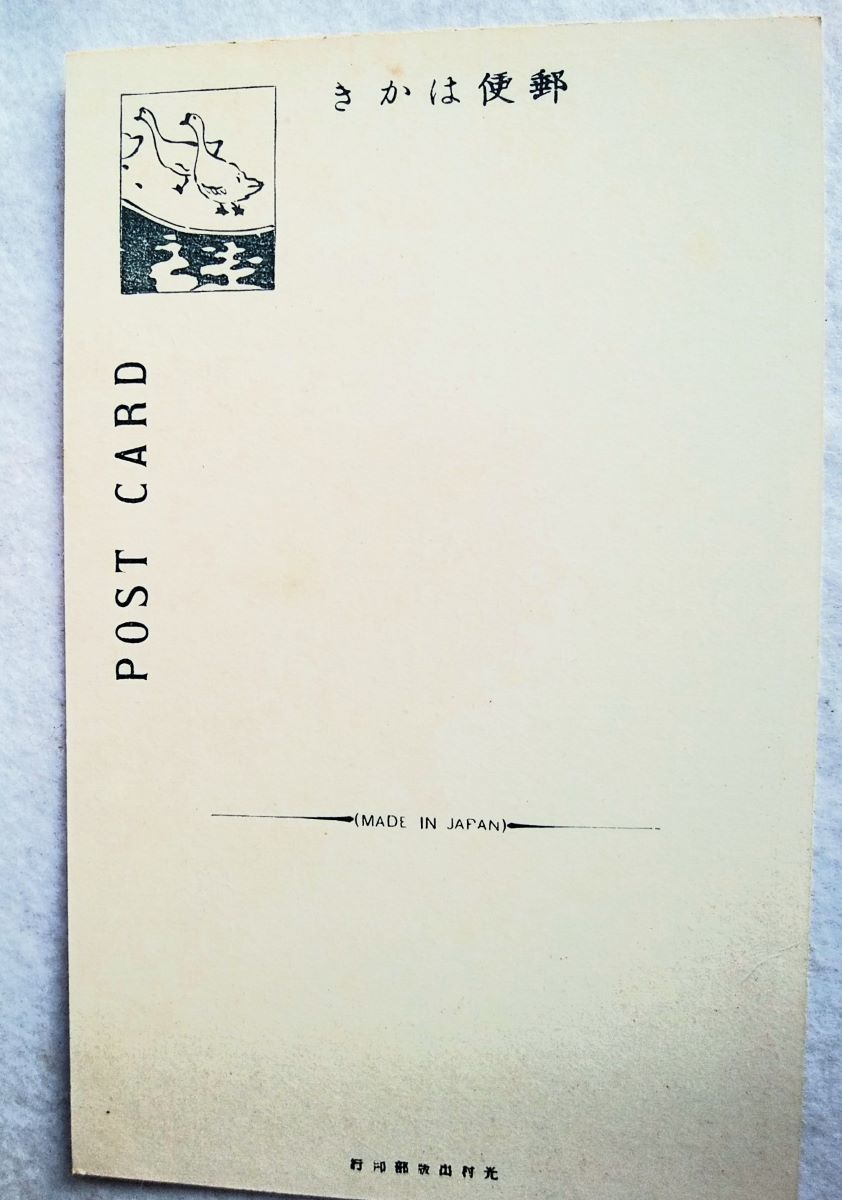 ホルダー跡、裏明治時期仕様 カラー仕様ですが、画質のキメが荒く、色薄く、色は、復刻の時に付けたのかも知れません。