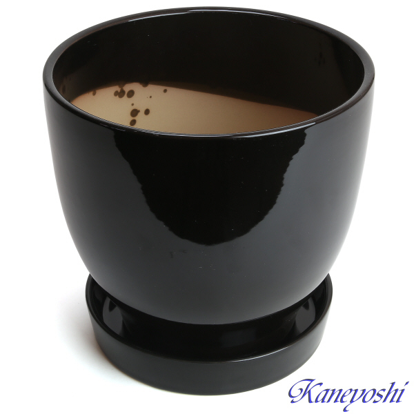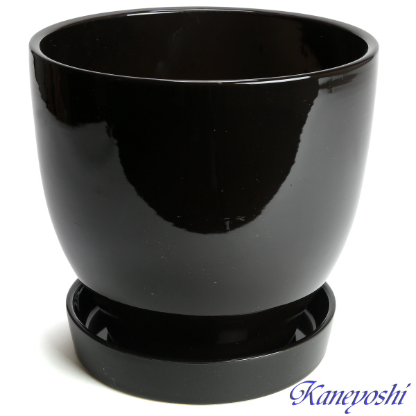 輝く黒がとっても【おしゃれ】な植木鉢と受皿です。