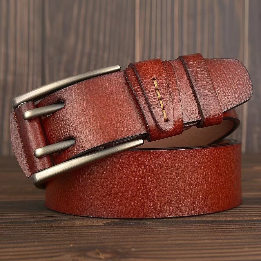 OHJ438☆新品メンズベルト ダブルピンバックル 高級 レザーベルト 紳士 カジュアル 男性 ビジネス サイズ調節可 革