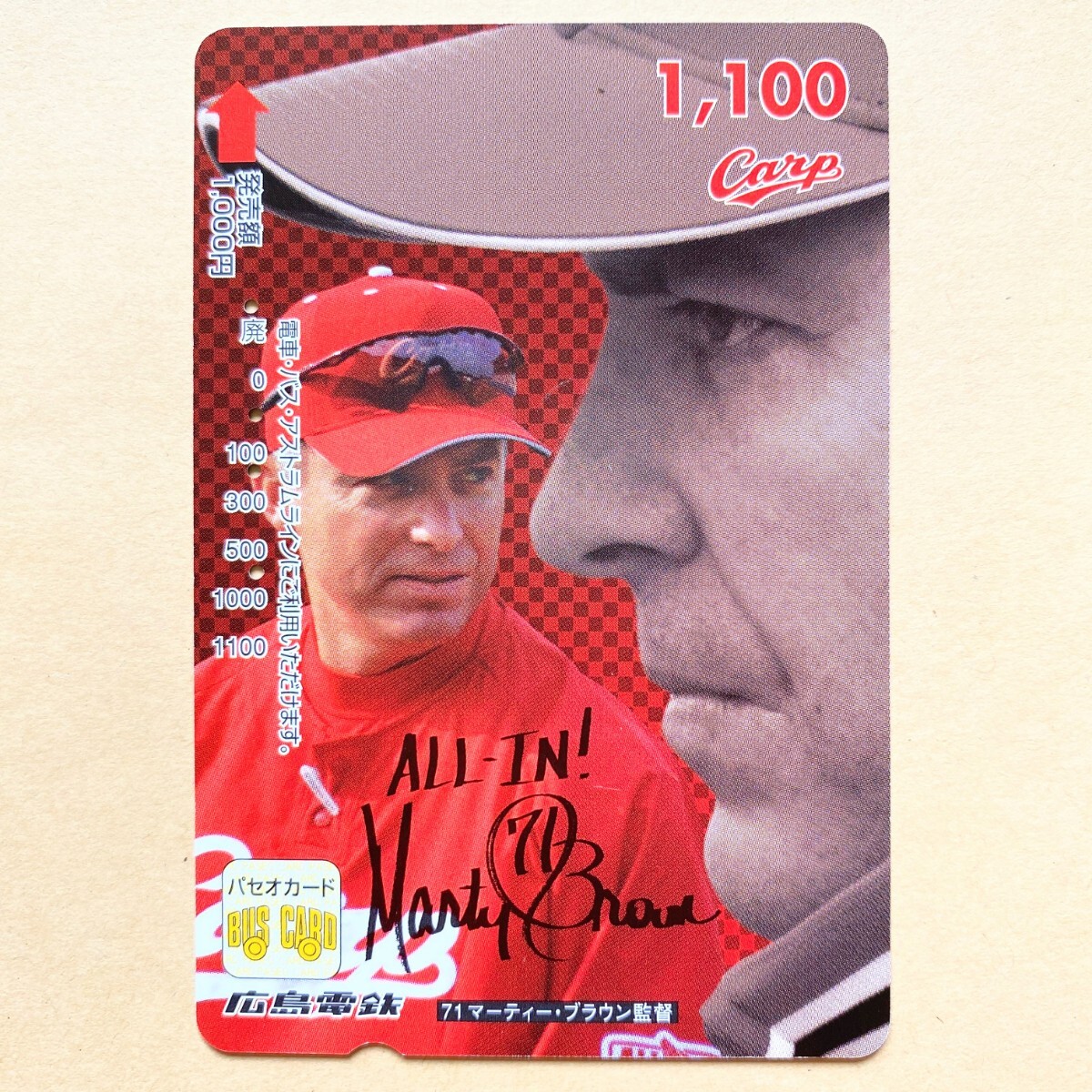 【使用済】 野球パセオカード 広島電鉄 マーティー・ブラウン監督 広島東洋カープ