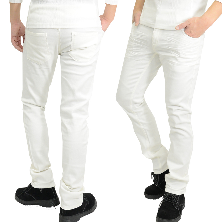 メンズデニム ストレッチデニム 髭加工ジーンズ 33243 スキニーパンツ スリムパンツ 新品ホワイト LL