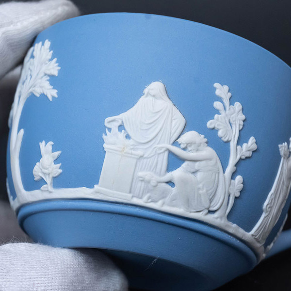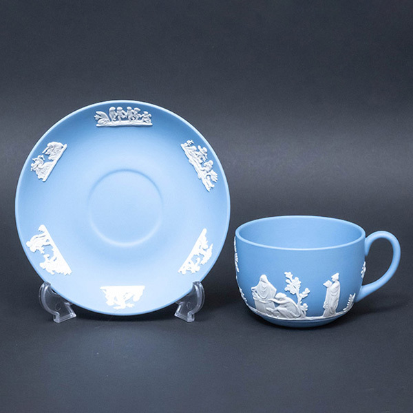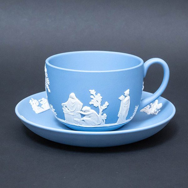 ウェッジウッドの代名詞ともいえる、ジャスパー(ペールブルー)のティーカップ&ソーサー。 爽やかなペールブルーの素地と繊細なギリシャ神話のレリーフの組合せが上品です。使うほどに風合いが増していくのをお楽しみください。コーヒー紅茶兼用でどちらでも使っていただける定番の一品です。 ■サイズ カップ:直径87 × 高さ58mm、ソーサー:直径139mm ■付属品 なし ■状態 B(良品):レリーフにわずかに変色があります。 |