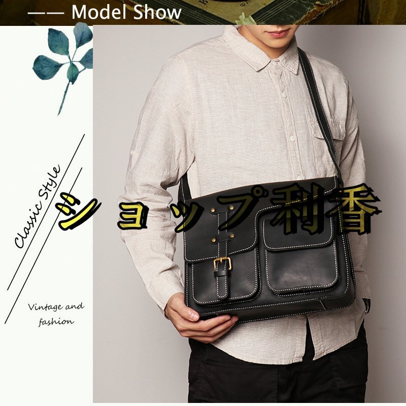 新入荷 メンズバッグ 本革 レザー ショルダーバッグ 斜め掛けバッグ メッセンジャーバッグ iPad対応 ビジネスバッグ 通学 通勤 ブラック