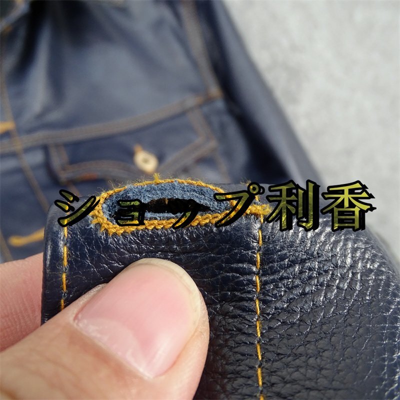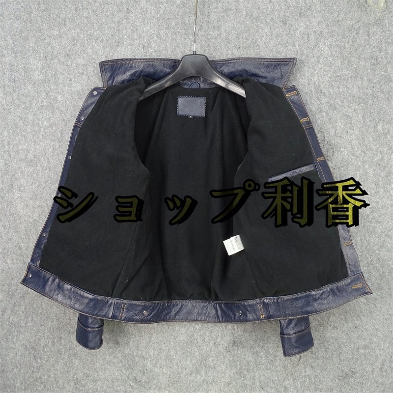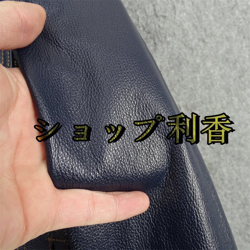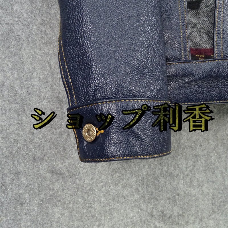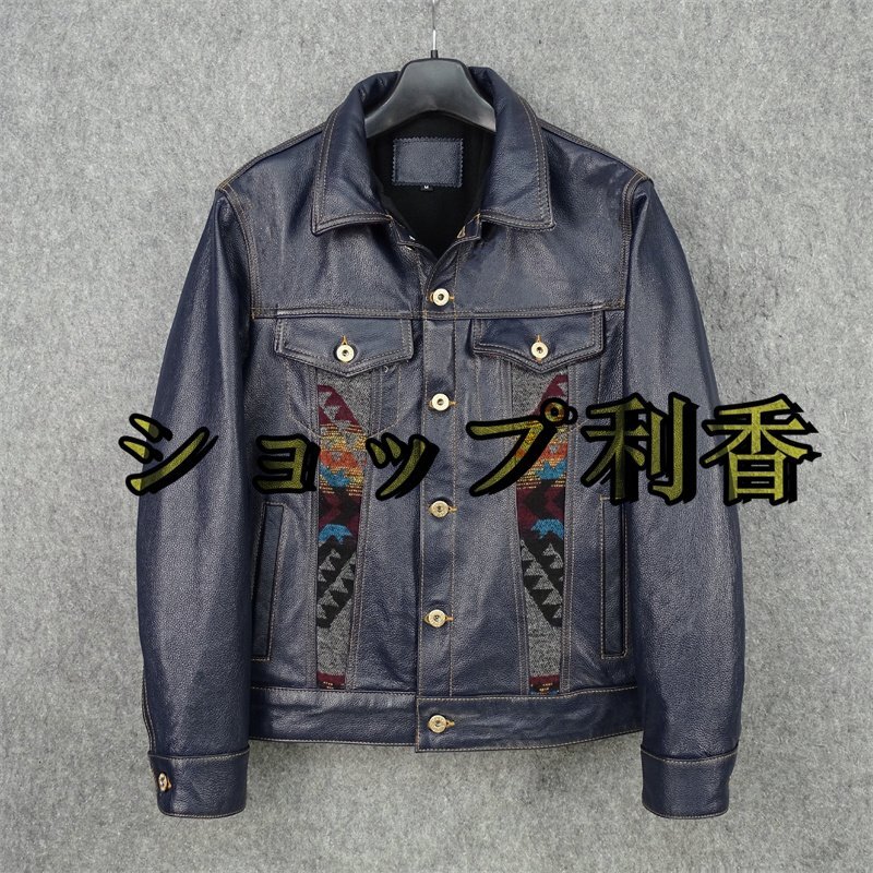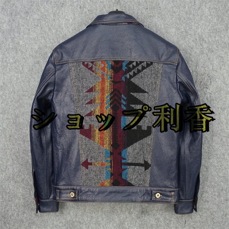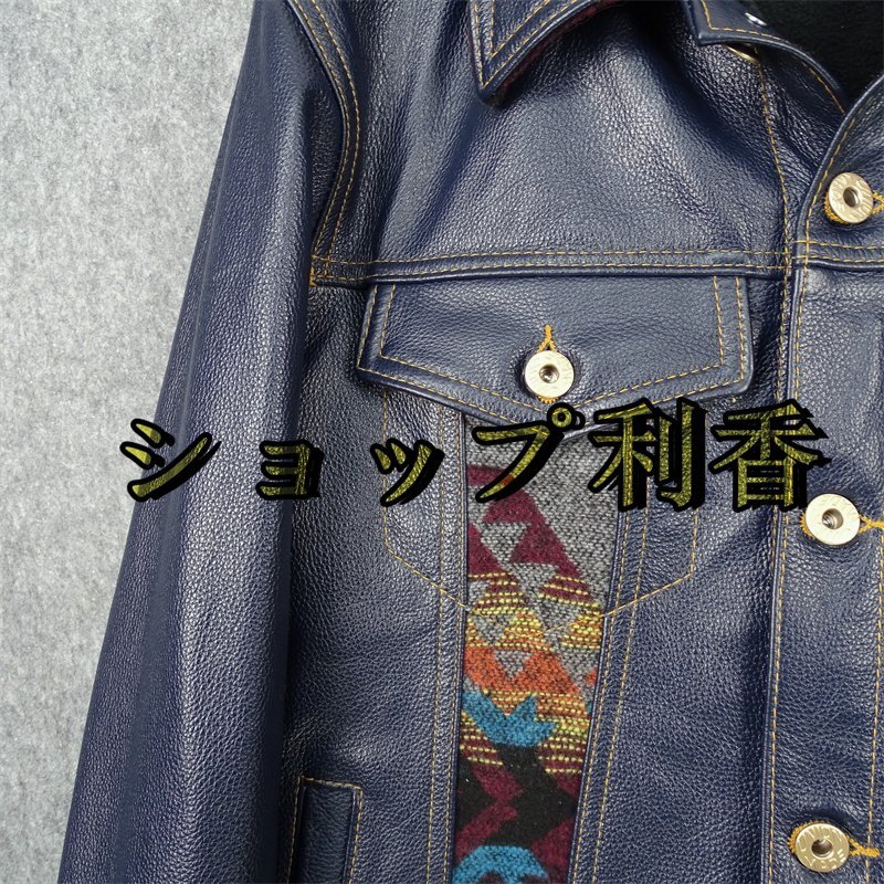 レザージャケット 上品 ナバホ柄切り替え 本革  牛革 暖かい ライダースジャケット 革ジャン S~5XL ネイビー