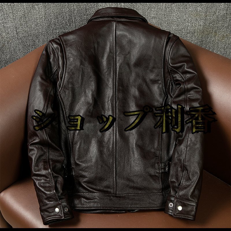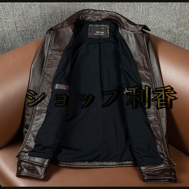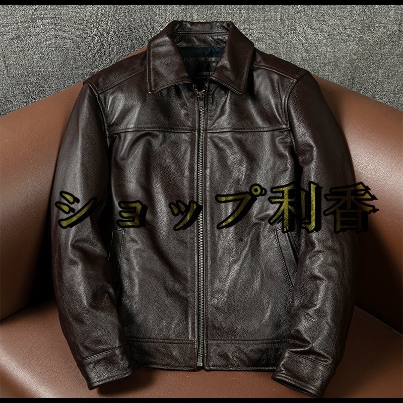 メンズジャケット レザー  牛革 本革 ジャケット ブルゾン オイルレザー ライダースジャケット  革ジャン  S~5XL ブラウン