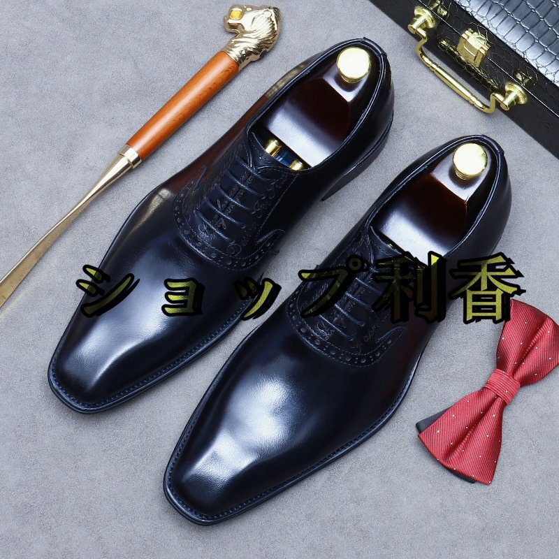 超希少 メンズ ビジネスシューズ 高級新品 レザーシューズ 職人手作り 牛革 モンクストラップ 紳士靴 本革 革靴 ブラック 24cm~27.5cm