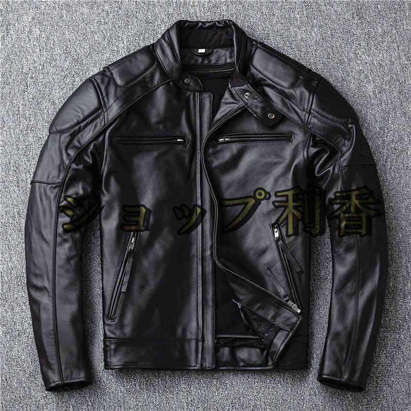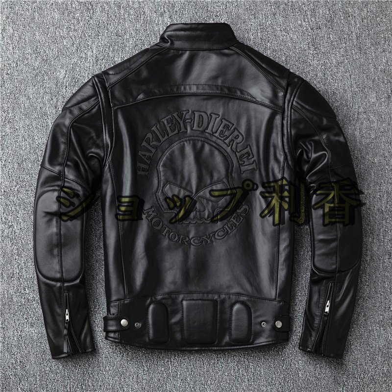 人気商品 レザージャケット 革ジャン ライダース バイクジャケット カウハイド 牛革本革 スカル柄 夜間反射効果 ライナー取り外し可 S~4XL