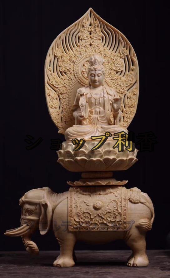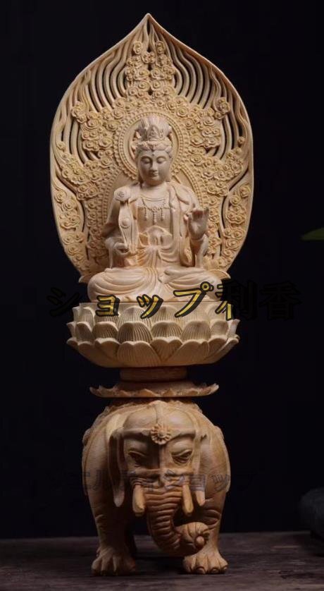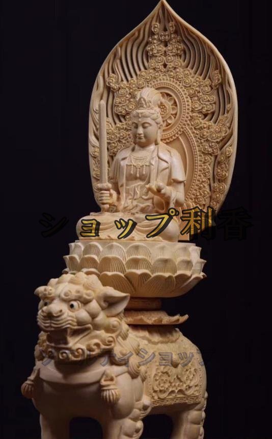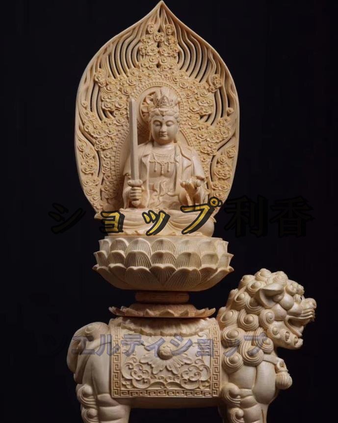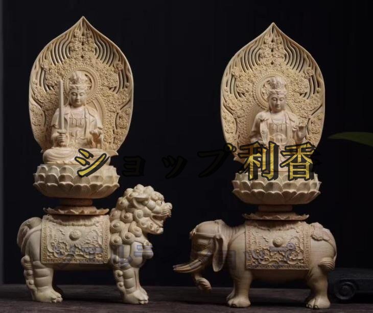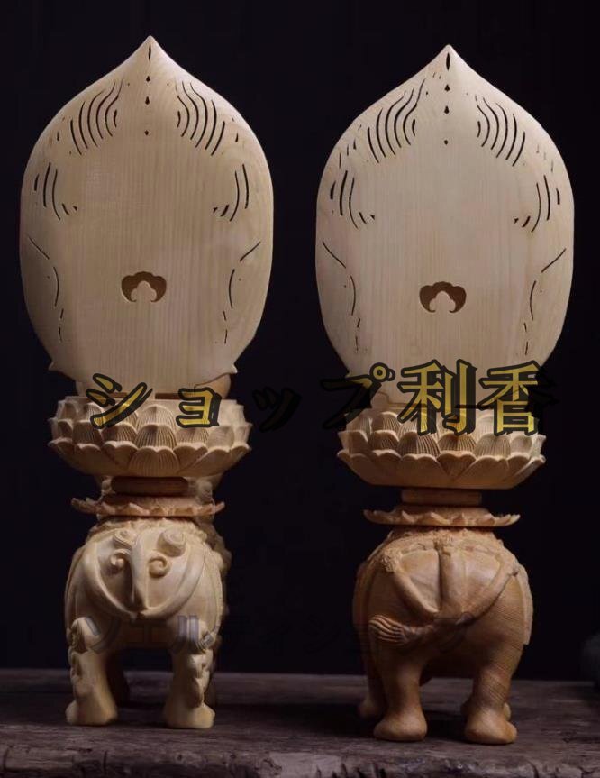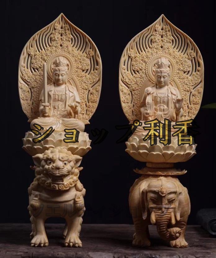高品質★仏教美術 精密彫刻 仏像 手彫り 極上品 文殊菩薩座像 普賢菩薩座像  高さ約36.5cm