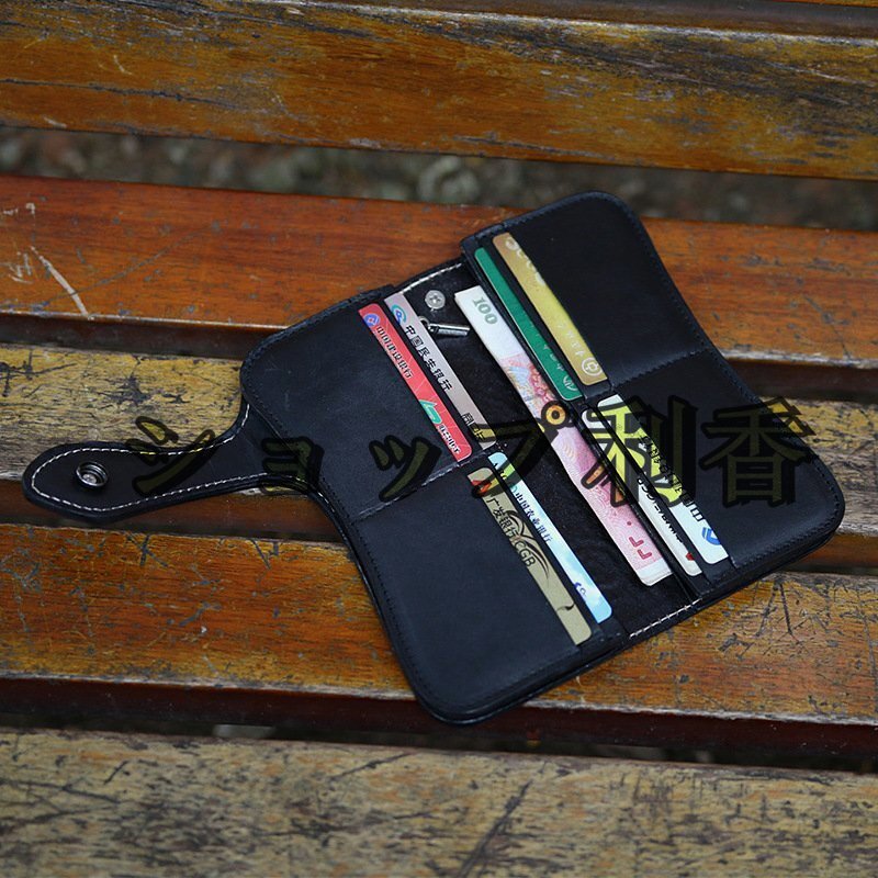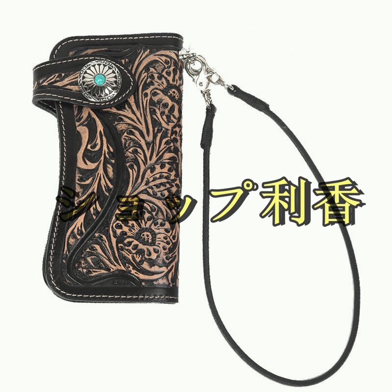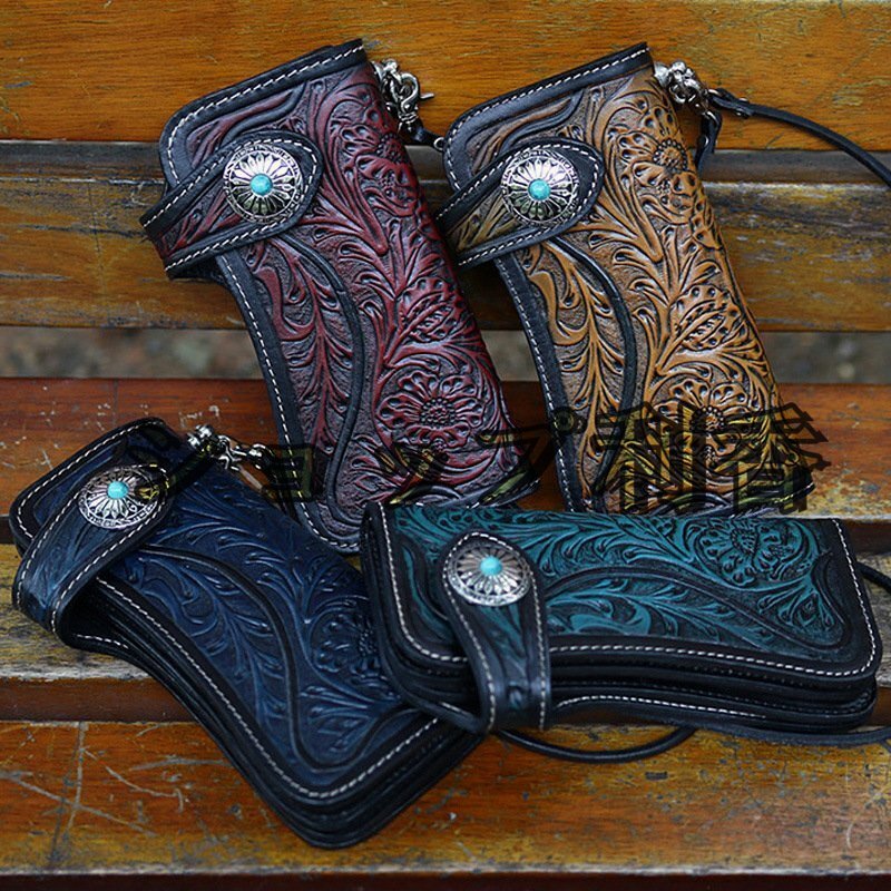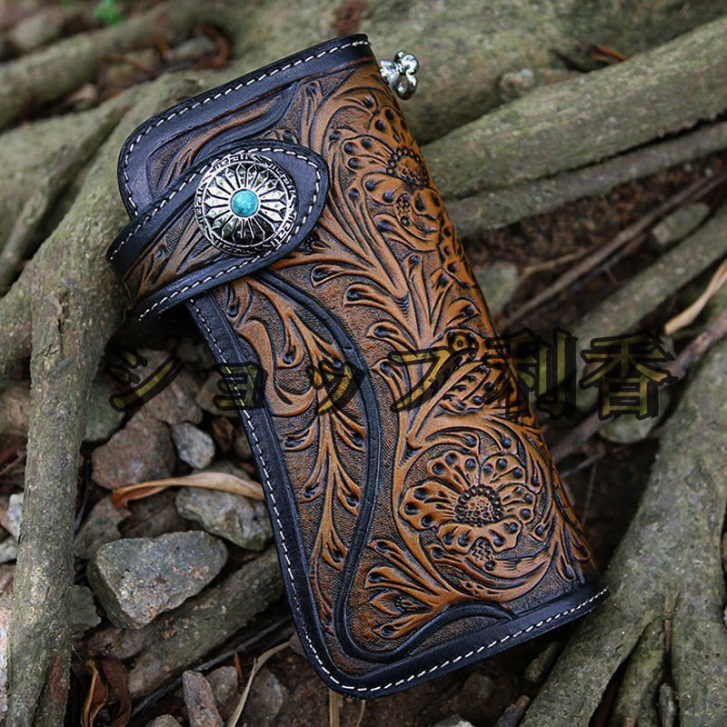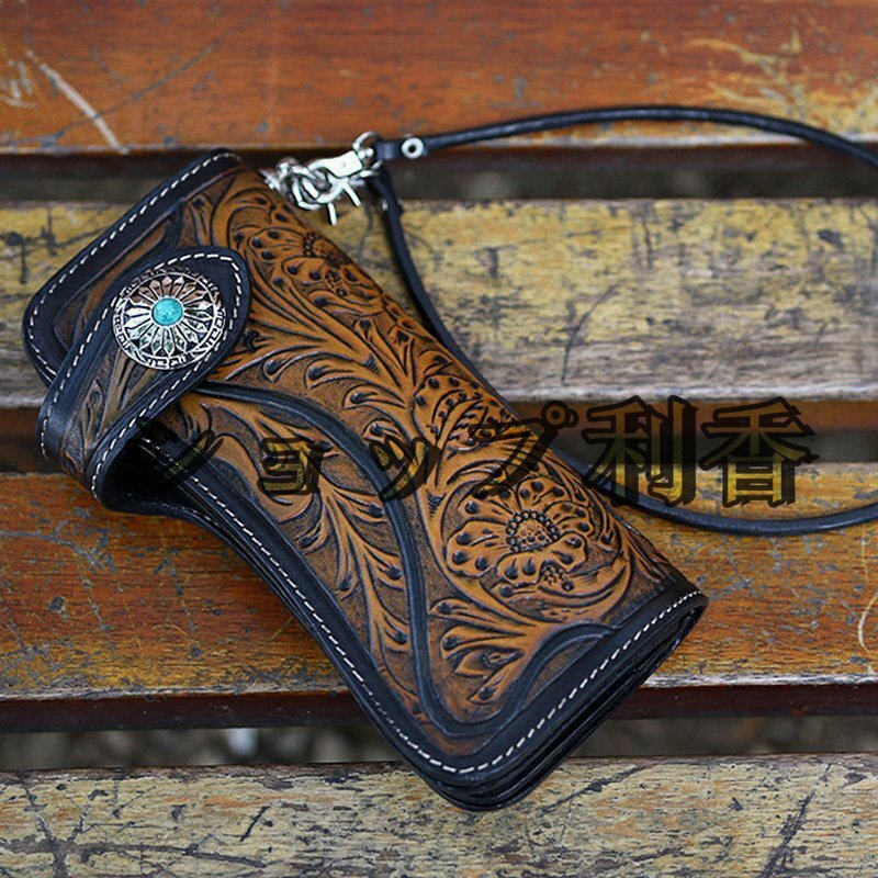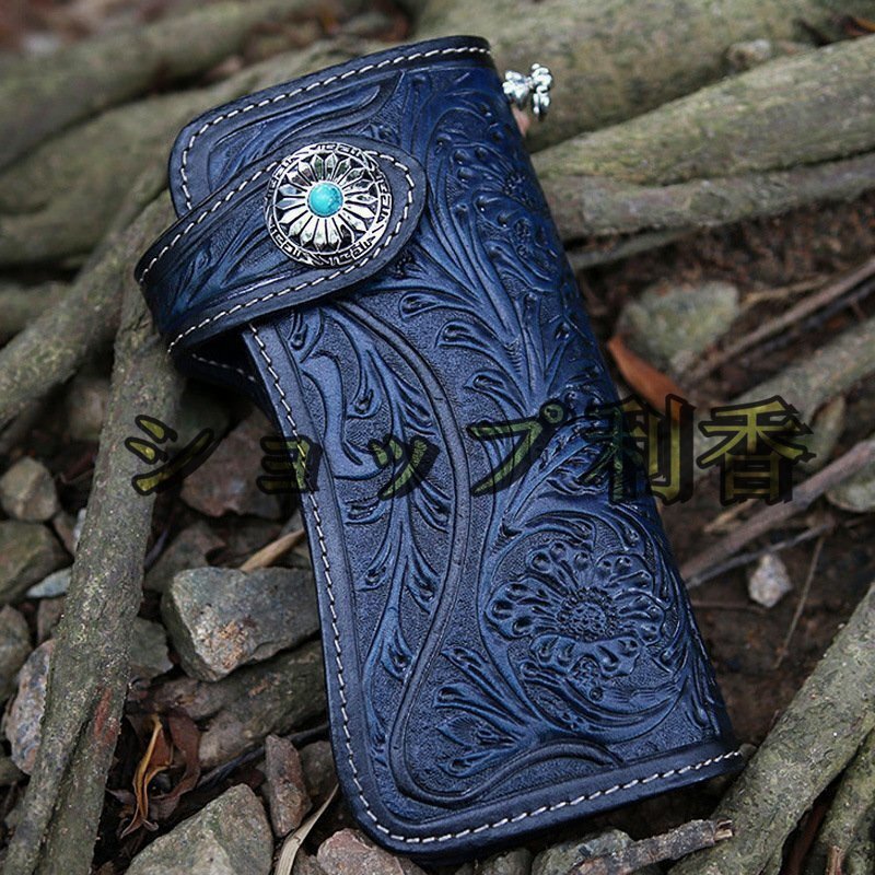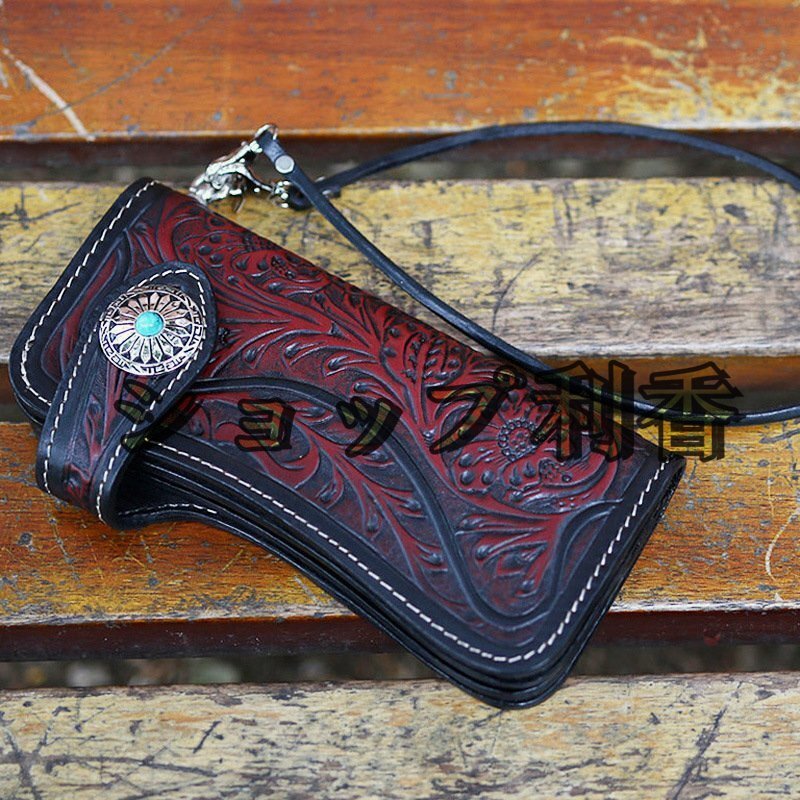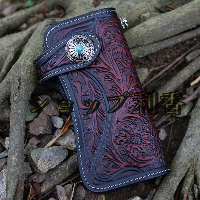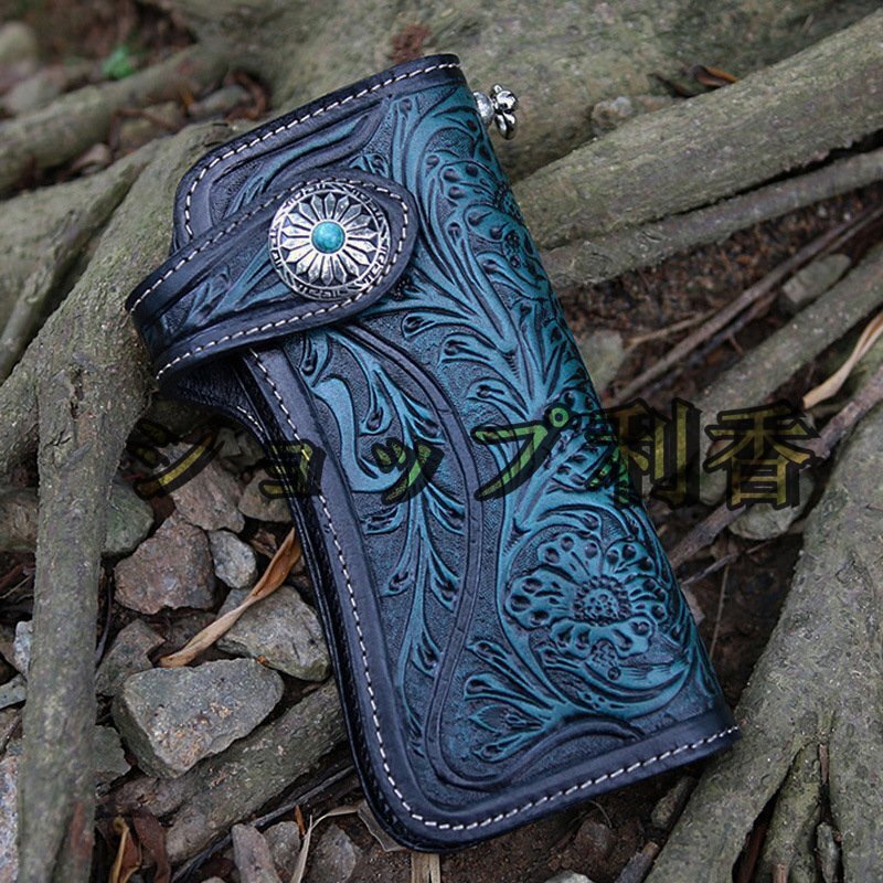 長財布 ハンドメイド 本革 高級牛革使用 サドルレザー バイカーズ ライダース ウォレット チェーン紐付き 緑色