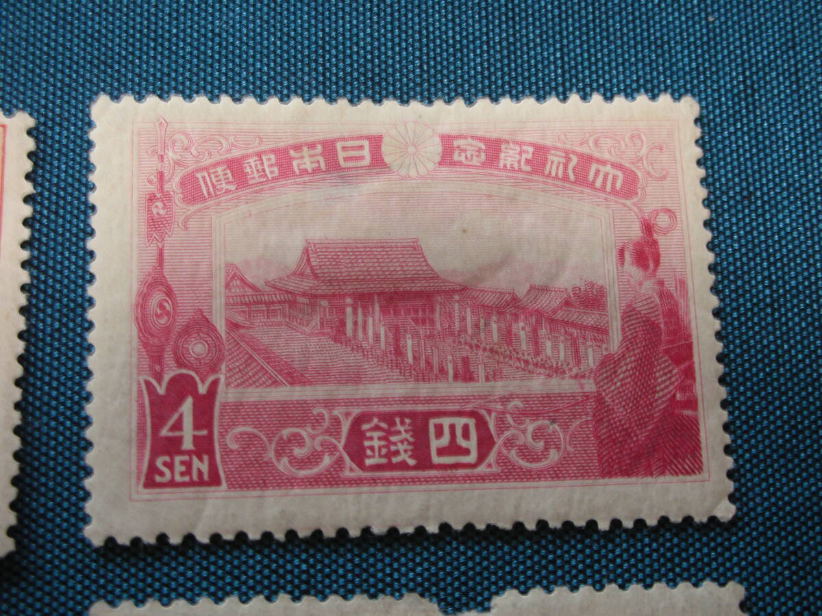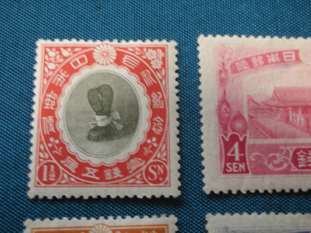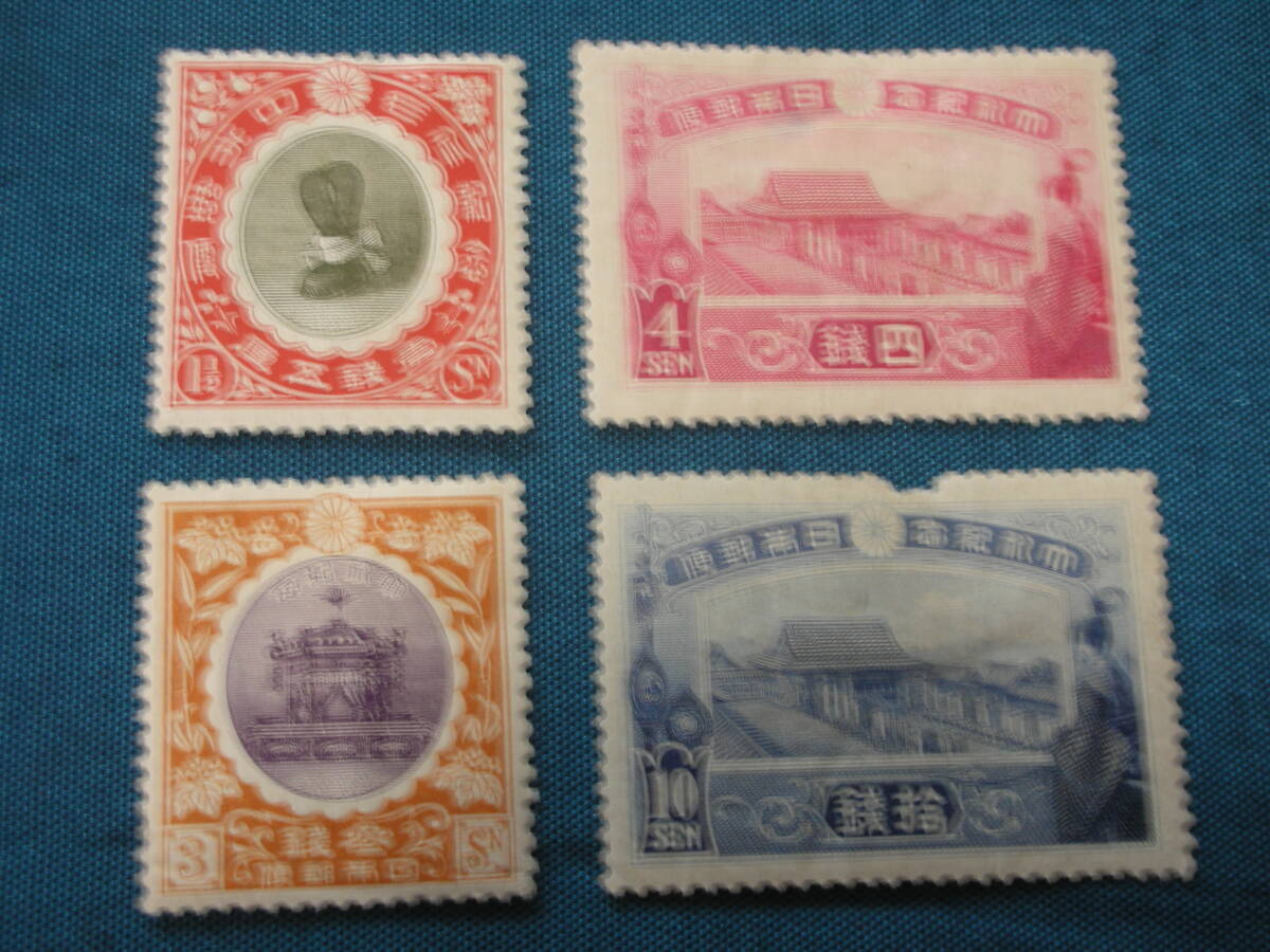 大正大礼記念 4種完 11/2,3,4,10銭 一部上部目打ち欠け有 格安 写真参照 型価26千円