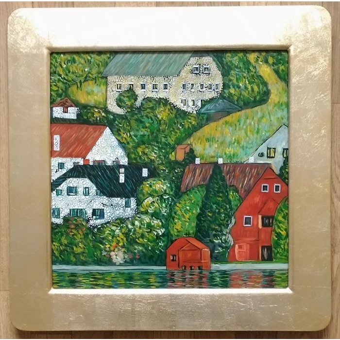 絵画サイズ30x30cm、専用金箔額付(額付サイズ39x39cm)。