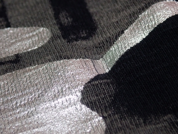 こちらの商品は中古品です。使用感があります。前後シルバープリント部分に割れがあります。 その他、目立つ汚れやダメージなどは見られません。 | |