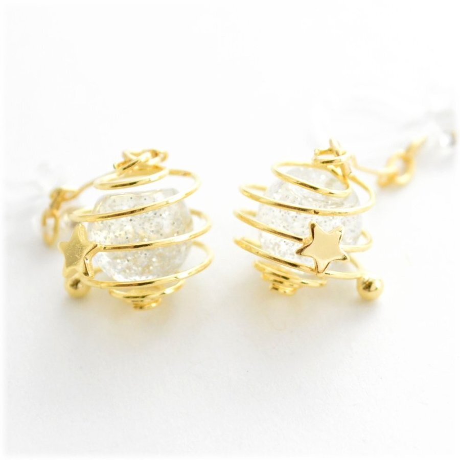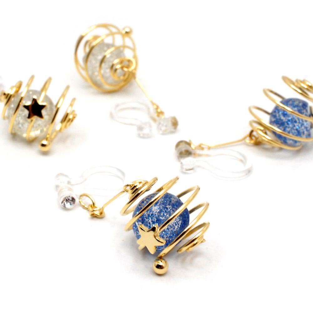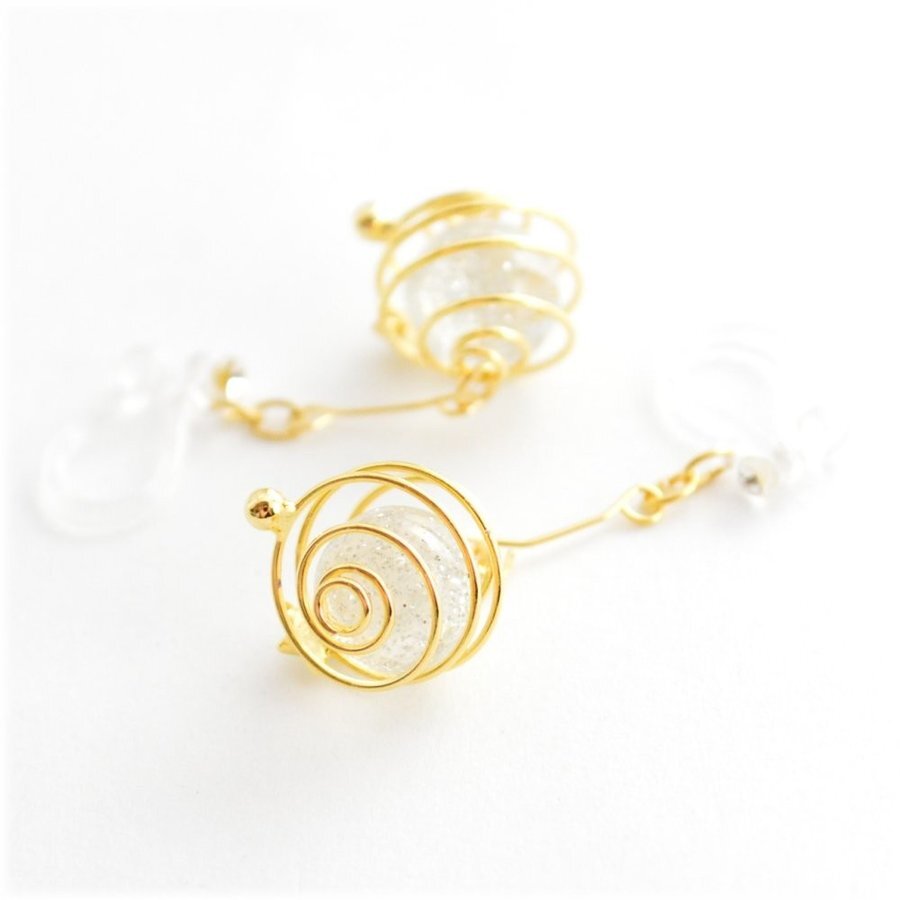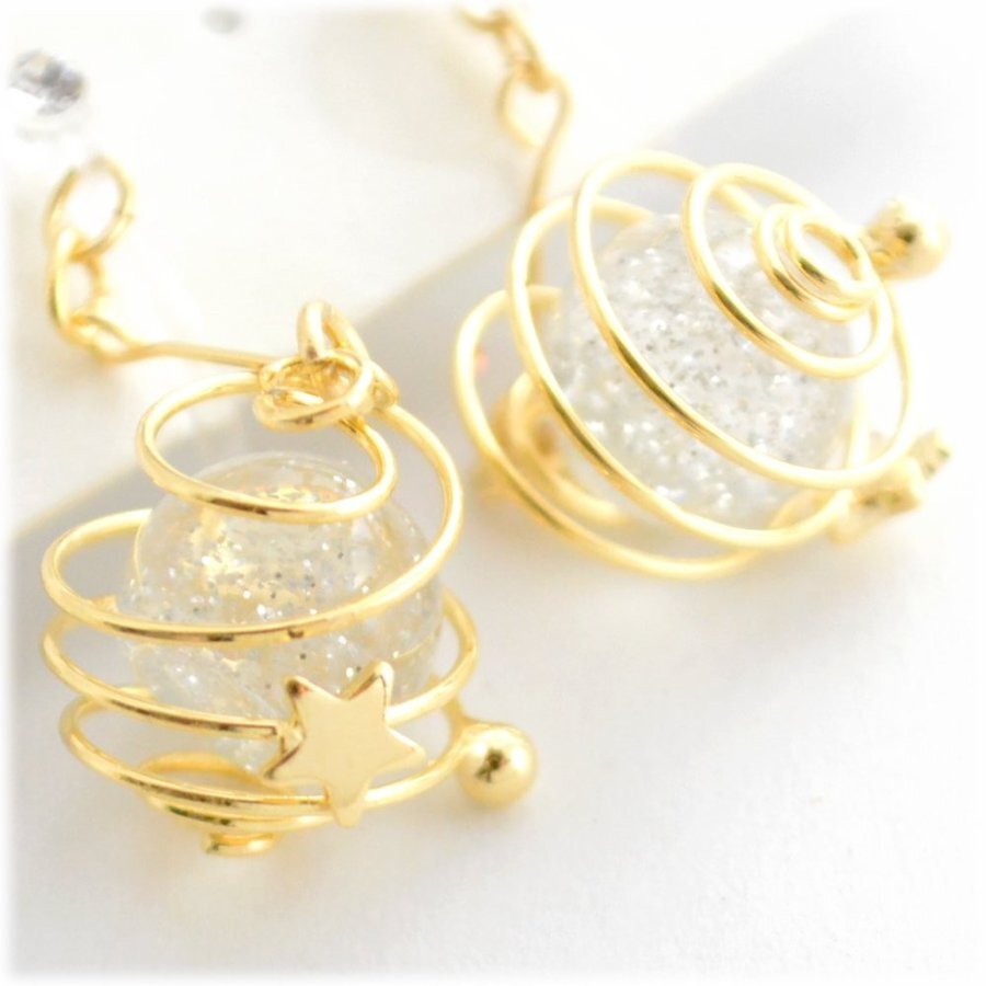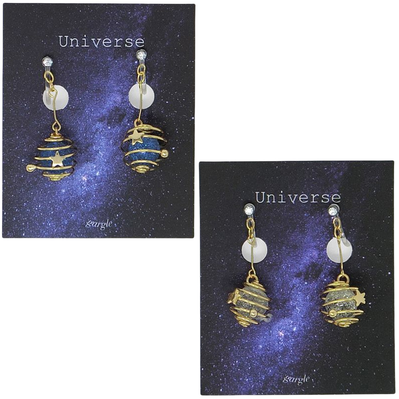 くるくると円を描くワイヤーワークが星の軌道を描き、宇宙らしさを感じさせてくれるアクセサリー。