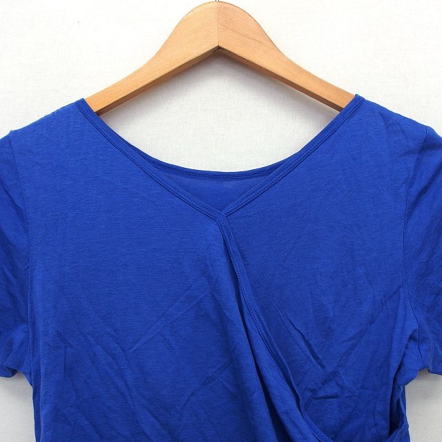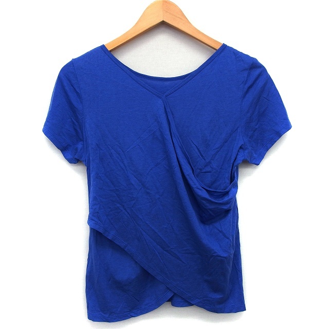 プラステ PLST Tシャツ カットソー 無地 シンプル バッククロス 半袖 丸首 バックVネック 綿混 2 パープル 紫 /HT26 レディース