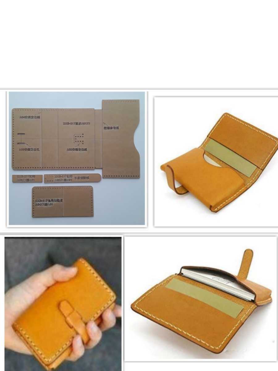 • 型に沿って革をカットして、各パーツを縫い合わせることによりカード名刺入れが作製できます。