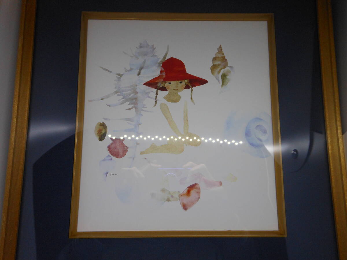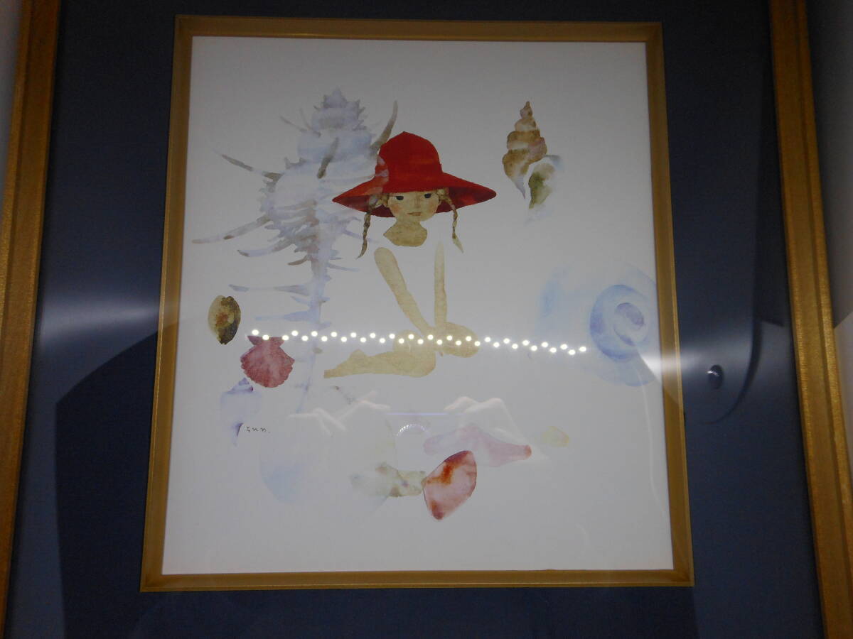 貝殻と赤い帽子の少女 1967 色紙画  by いわさきちひろ