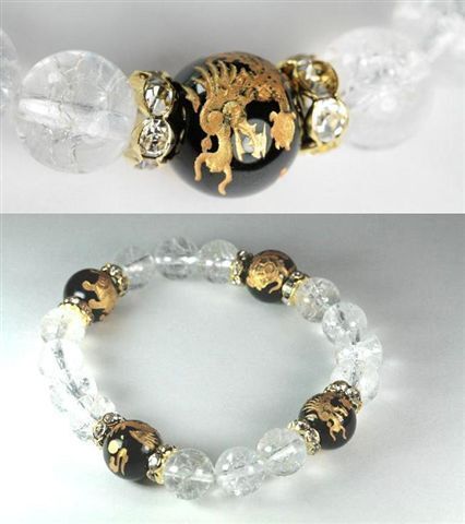 四神ブレス 爆裂水晶10mm&オニキス四神12mm No57