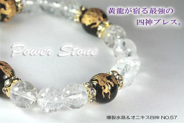 天然石 パワーストーン ブレスレット 爆裂水晶 オニキス四神 パワーブレス 風水 運気上昇 黄龍 四神獣 No57