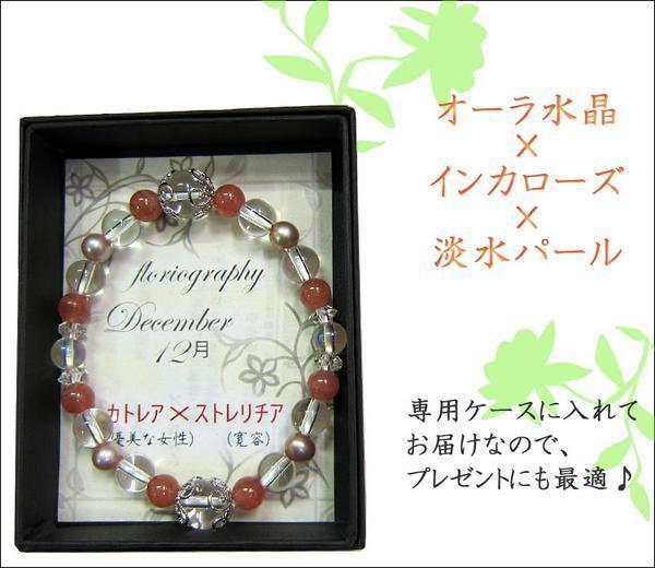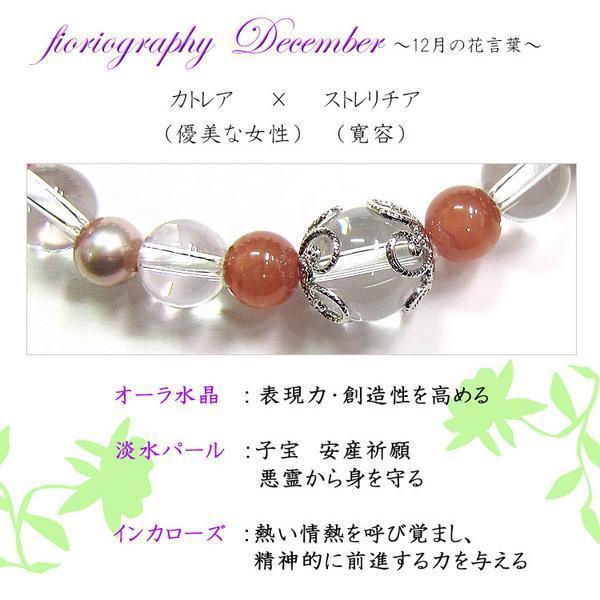 天然石 12月誕生花 パワーストーン レディース ブレスレット オーラ水晶×淡水パール×インカローズ (24) 新品