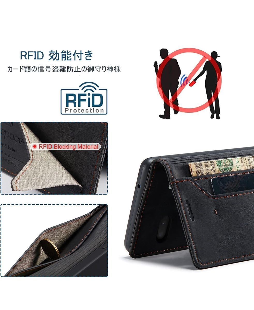 【磁気防止RFID功能 &機能性 4in1】磁気カードを保護するために磁器遮断功能があり、スキミング防止、不正アクセスから大切なクレジットカード、キャッシュカード、IDカードなどの個人情報を守れるRFIDスキミング防止の機能も備えています;①横置きスタンド機能:動画視聴でも手に持つ必要がなく、超楽々動画視聴が可能です;②財布型:ケースの裏側に一つのカードポケットとお札入れのフリーポケット一つあり、ショップでのポイントカード、交通機関でのスムーズな移動をサポートでき、 SUICA / PASMO / ポイントカード / メモ 等収納でき、ちょっととしたお出かけてもこれで十分です;③留め具なし、マグネット内蔵 ベルトなし、片手でも簡単操作できる;④ストラップホールはTPUケースの右下にあり、お好きなストラップを使用し、生活にもっと便利になり、または各種ボタンの使用、カメラ撮影、スピーカーホール等、すべての機能もそのまま立て掛けて稼働します;
