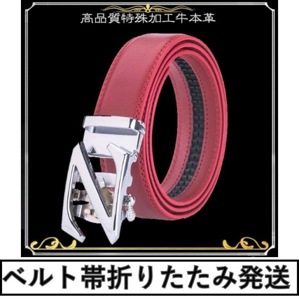 ベルト 【銀Z】【赤】 折りたたみ発送 穴なし 無段階調整ベルト ゴルフベルト 人気 オートロック メンズ 革 ビジネス カジュアル
