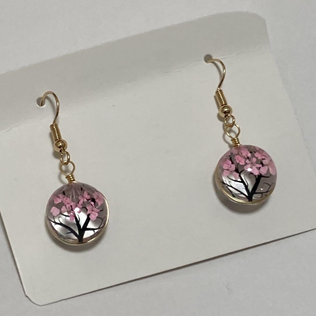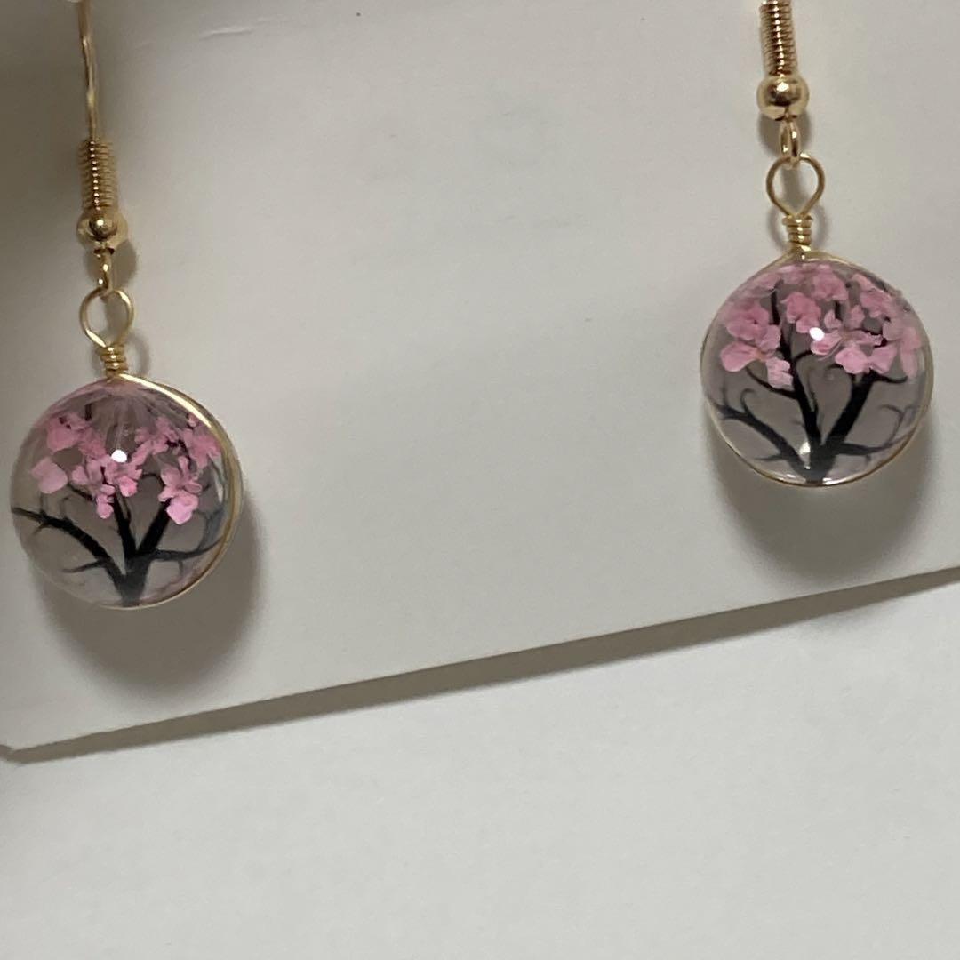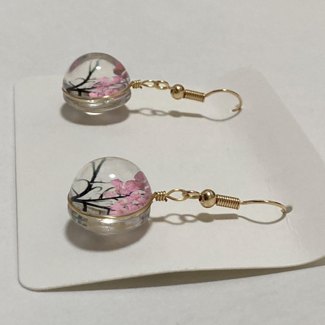 コロンとかわいい桜のドロップピアス ラウンド 春 花