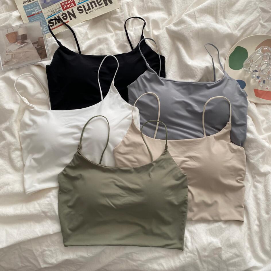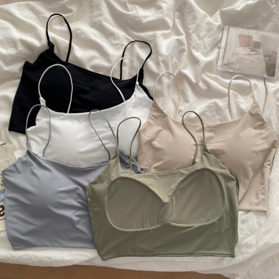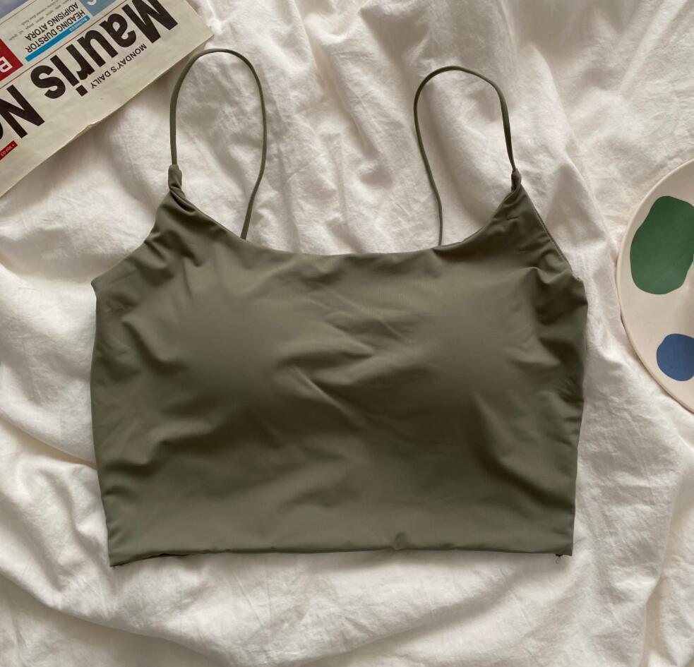 春夏秋冬新作 スポーツブラ 女の子 柔らかい ゆったり ブラ ハーフトップ ノンワイヤー カップ付き インナー 着心地上品 四季適用/グリーン