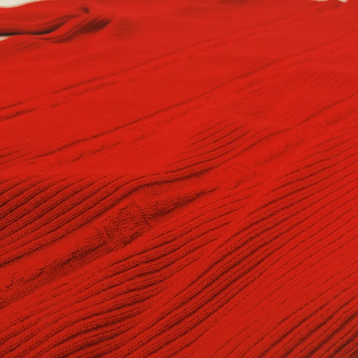 Y0965 美品 レナウン レディーストップスタートルネック長袖 厚手 伸縮性 クリーニングタグ付き Lサイズ レッド 赤 毛100% あたたか 秋冬