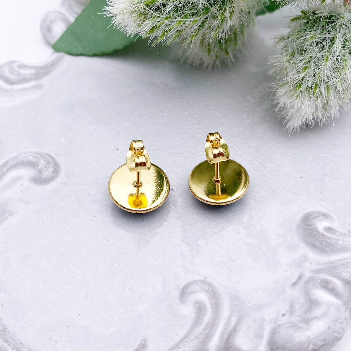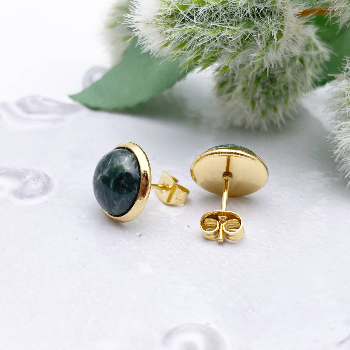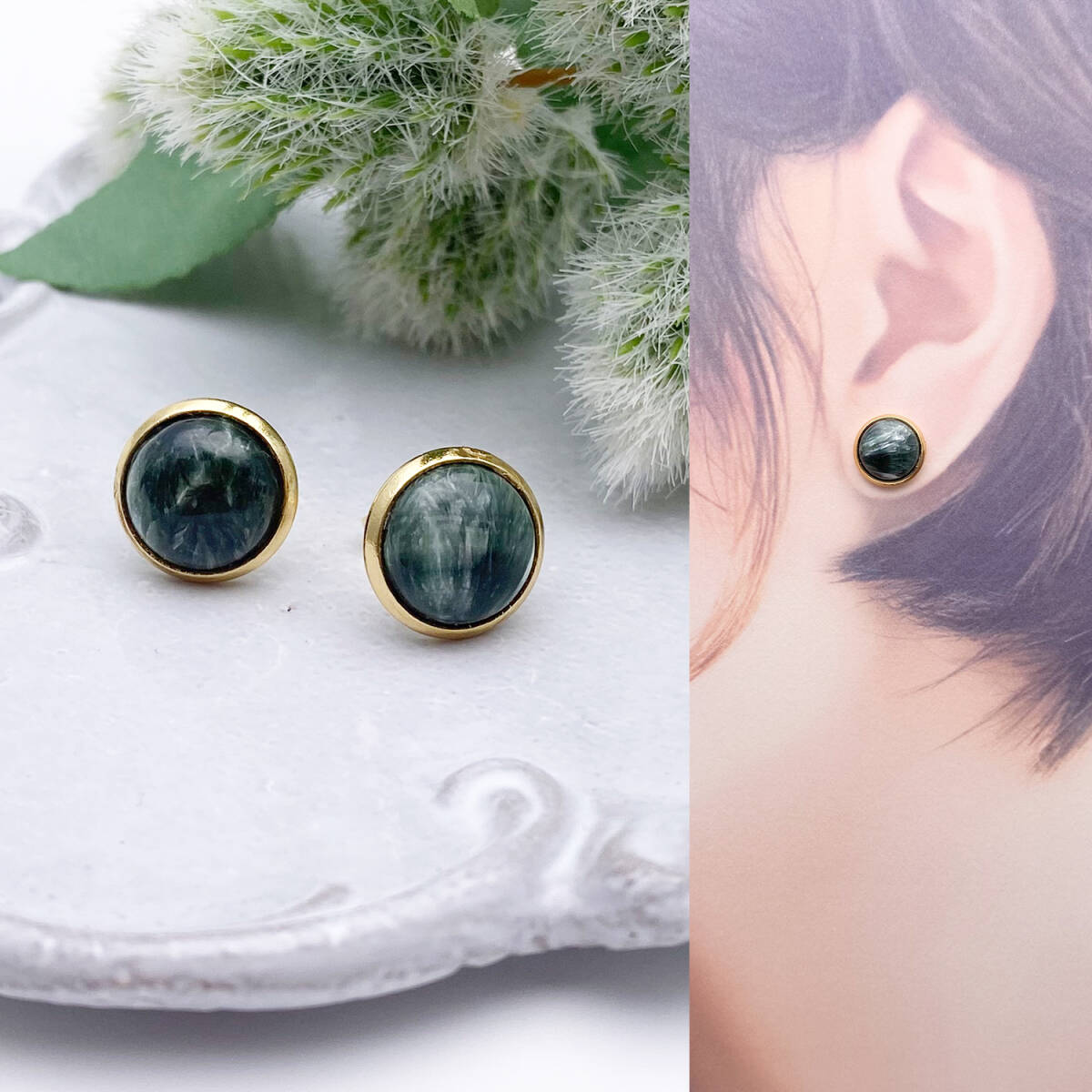 セラフィナイトカボション10mmスタッドピアス/24kgp/クリノクロア/天然石・パワーストーン/ハンドメイド
