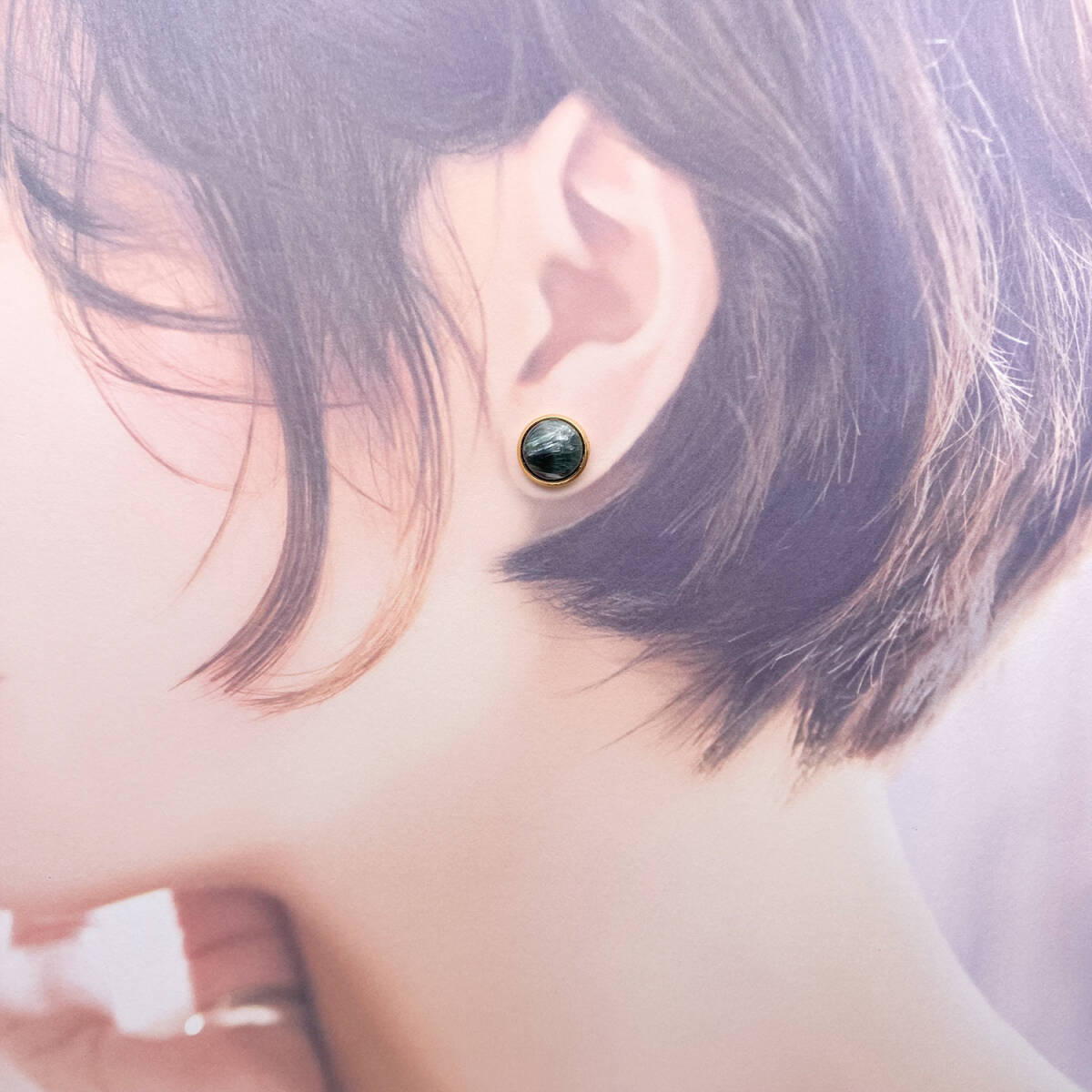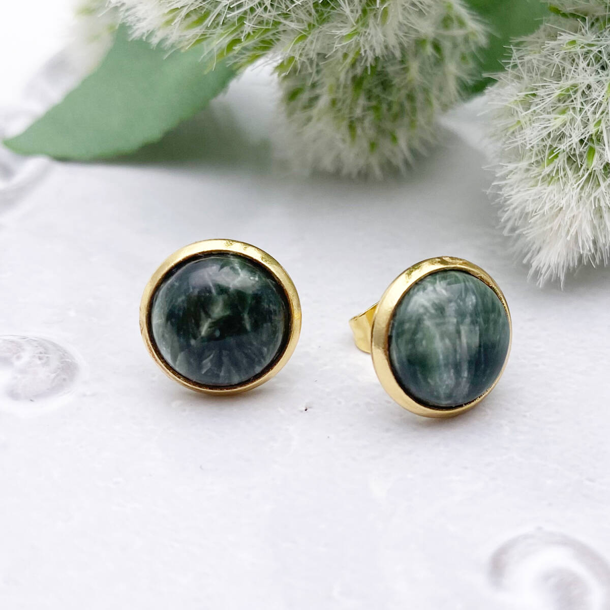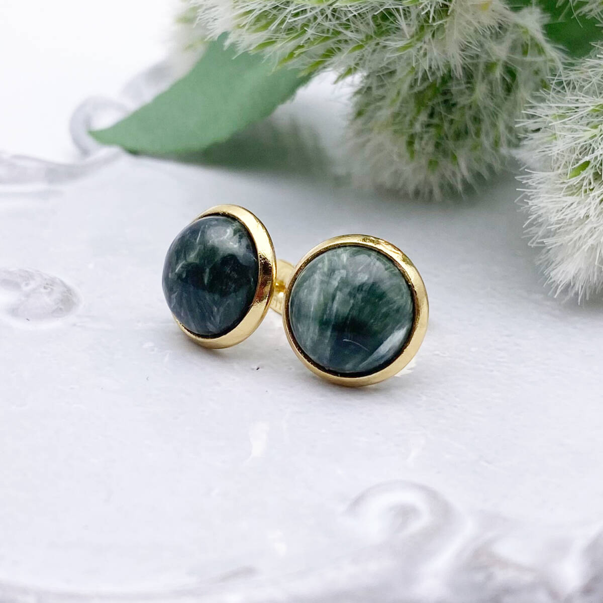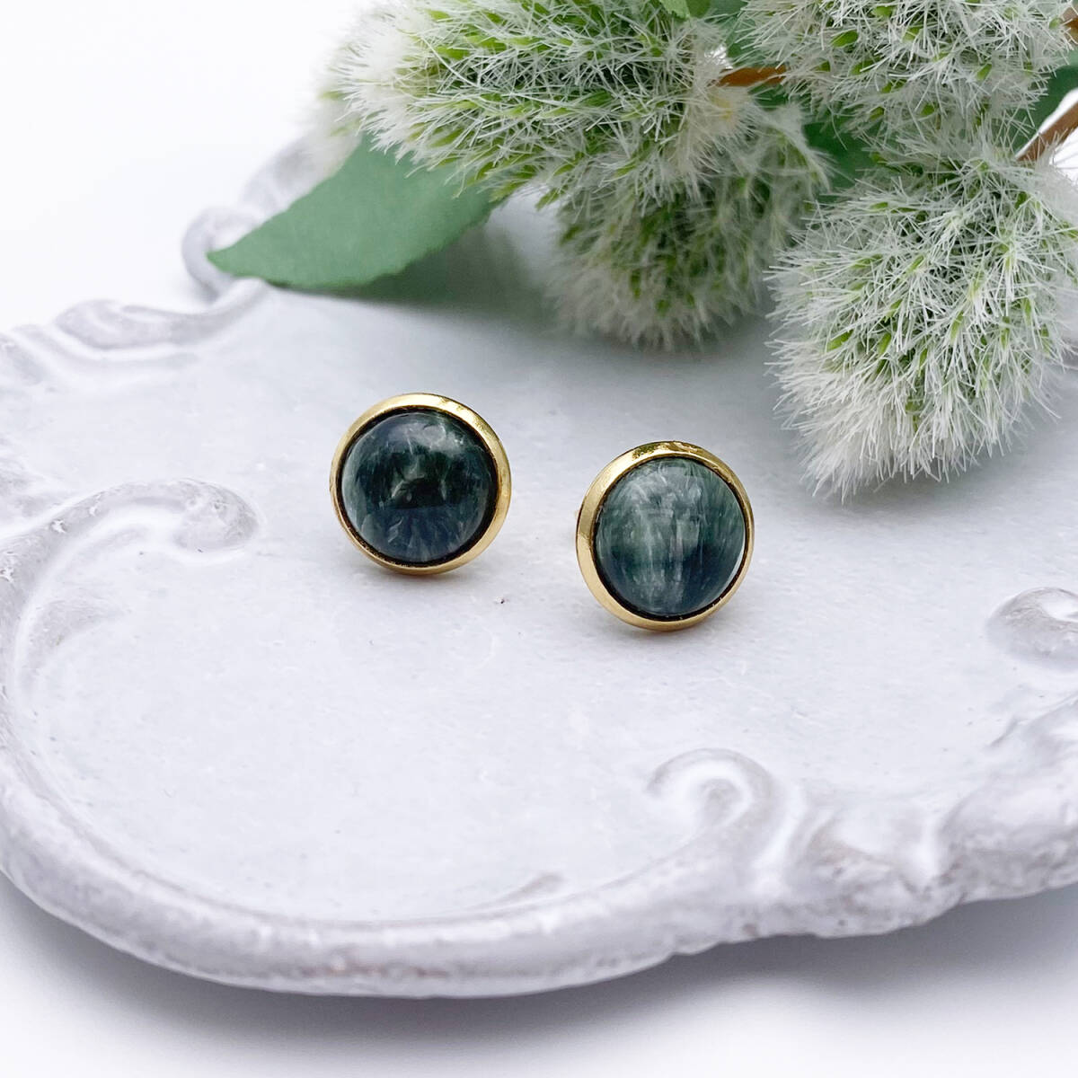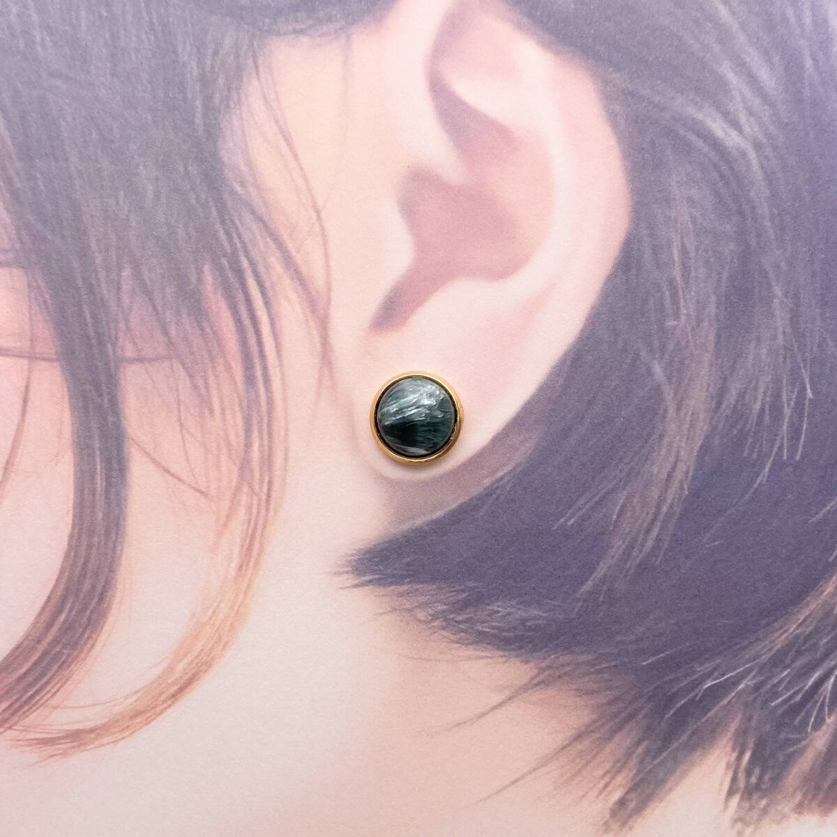 セラフィナイトの10mmカボションを使ったスタッドピアスです。