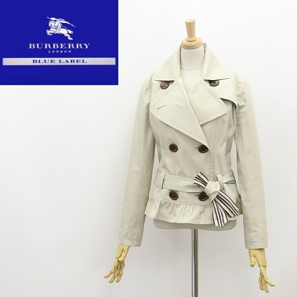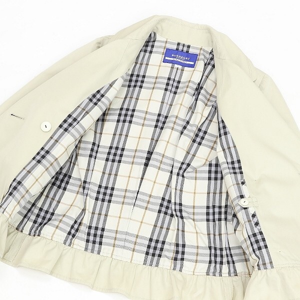 ◆BURBERRY BLUE LABEL バーバリー ブルーレーベル 裏地チェック柄 リボンベルト付 コットン ダブル ショート コート ライトベージュ 38 | |
