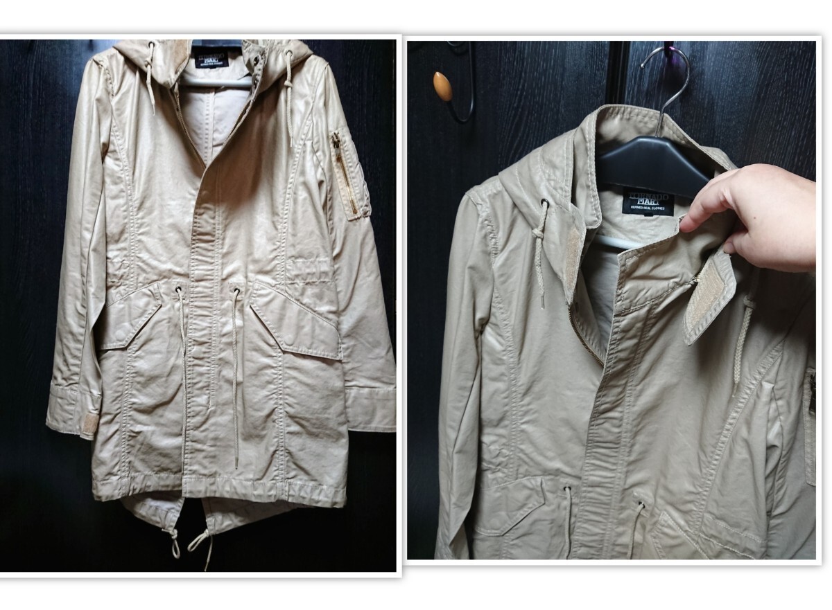 コーティング加工をした少し個性的なモッズ型ライトコートになります。