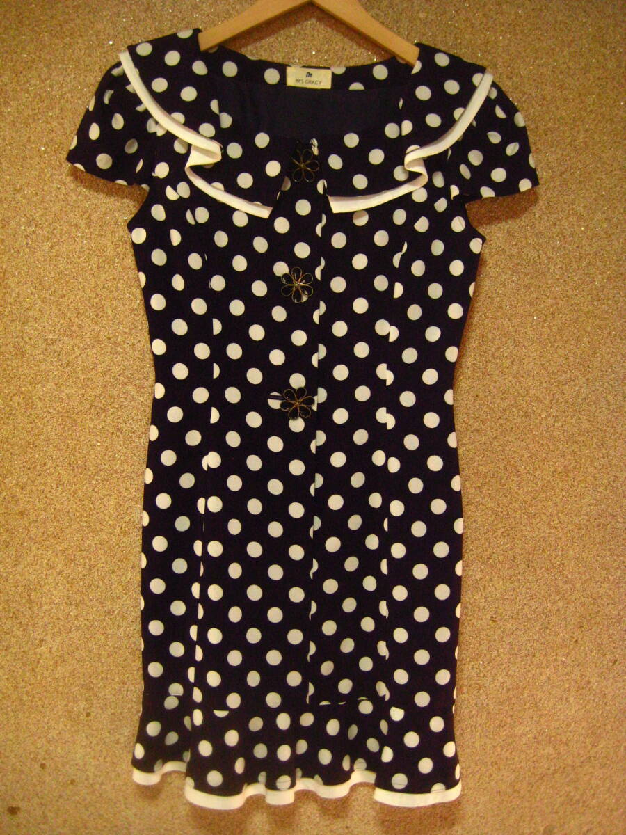 。○●サイズ表記●○。 9表示 。○●素材●○。 表地がトリアセテート・ポリエステル ・裏地がポリエステル 。○●平置きで実寸サイズ●○。 着丈約85㎝(後ろの襟元か裾まで)、身幅約44㎝、 肩幅約39㎝、袖丈約14cm、ウエスト約34cm ●状態は主観になりますが10段階中8ぐらいになります。 ●雰囲気がとてもあるかわいいデザインになります。激安で出品いたしますのでぜひこの機会にどうですか!!!