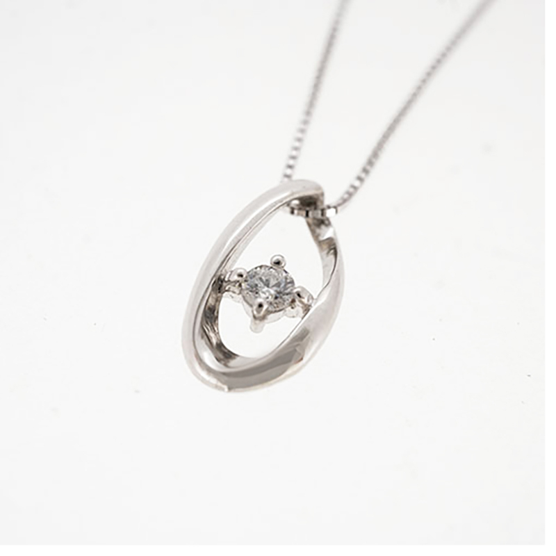 【ju118】ダイヤモンド ネックレス/0.03ct/K10WG ホワイトゴールド/H&C/一粒ダイヤ/未使用 【中古】 レディース