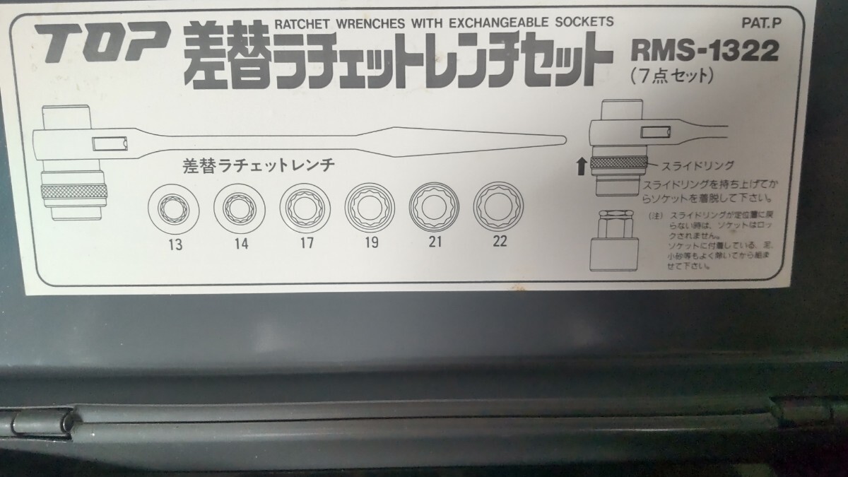 ★TOP★差替ラチェットレンチセット RMS-1322(7点セット)の出品です。