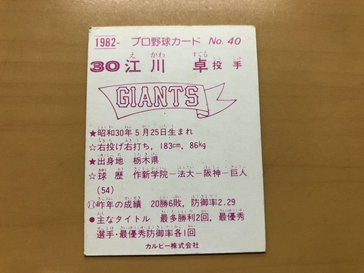 カルビープロ野球カード 1982年 江川卓(巨人) No.40