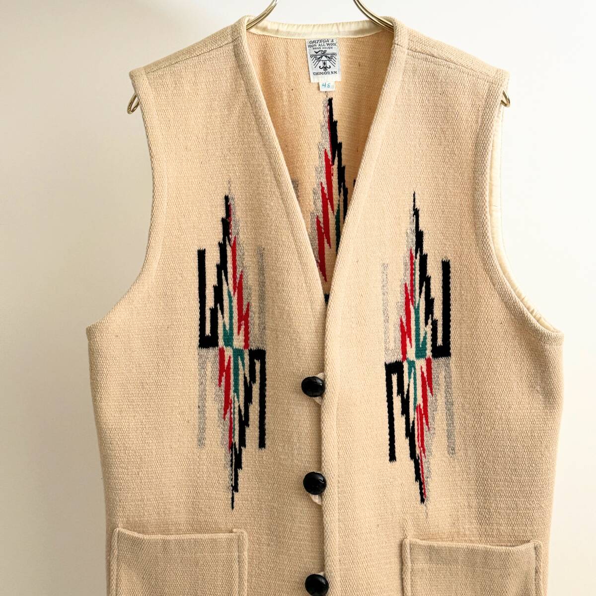 希少《 Old Model / ORTEGA'S / Size 48 》70s 80s 美品【 ビンテージ オルテガ アイボリー チマヨ ベスト ビッグサイズ 生成り 白 】