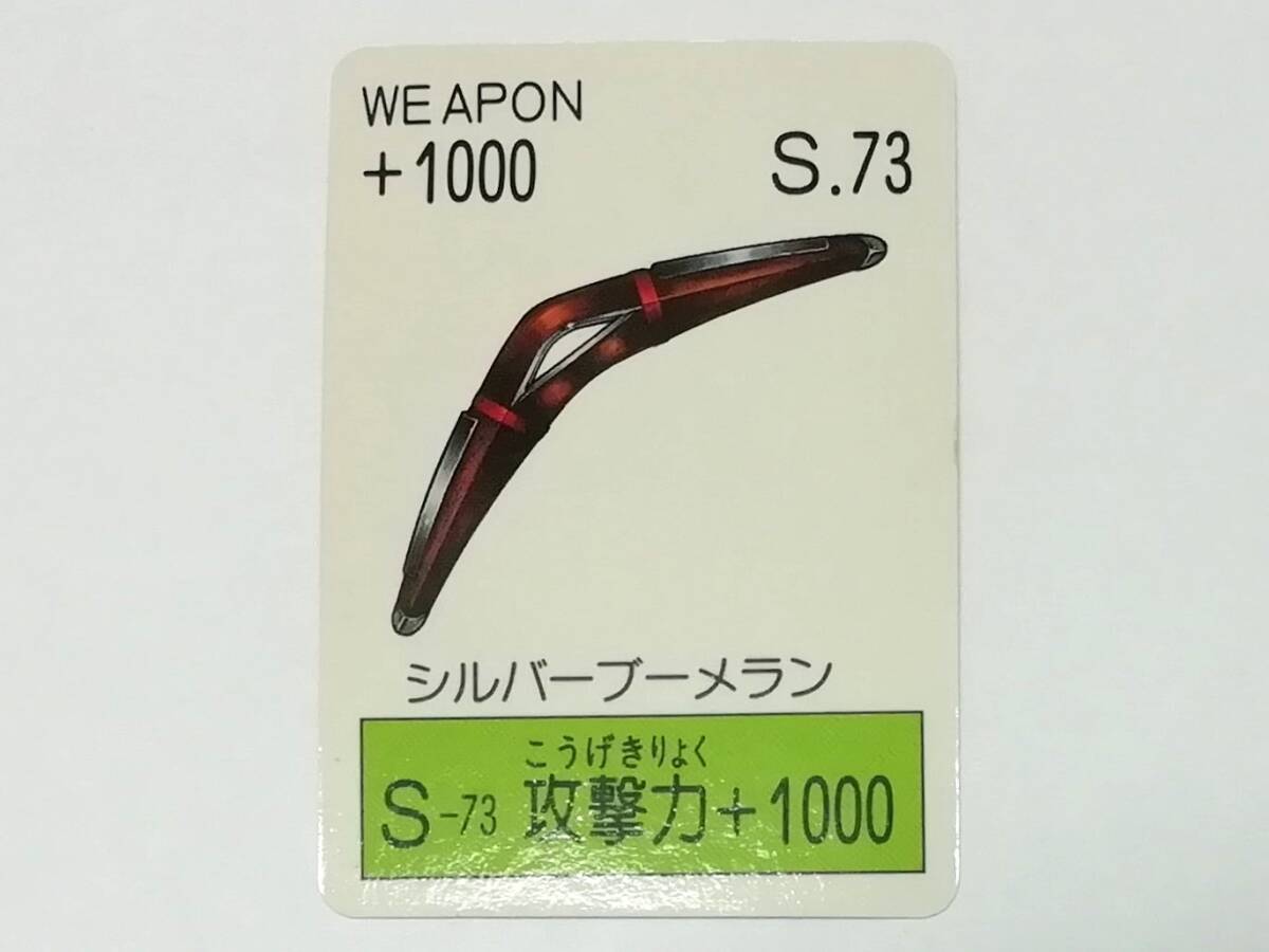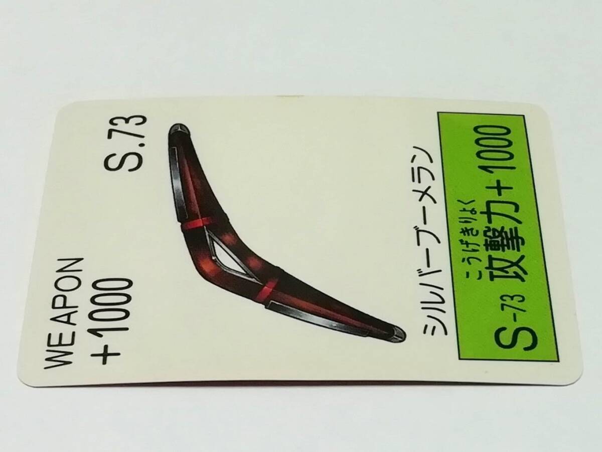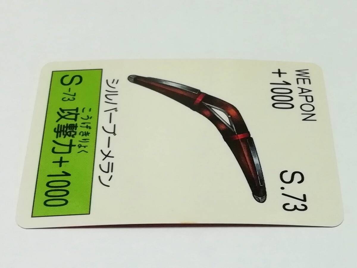 『ヴィルガスト』ガシャポンRPG ミニカード 甲竜伝説ヴィルガスト『シルバーブーメラン』1枚です。(ガチャガチャ・カプセルTOY・関連アイテム)■カードダス・台紙など在庫有り●【商品状態】カプセルに封入されてるなどしていた品で元々のイタミや湾曲が有ります。30年以上経過した中古の紙製品で経年による変色の場合が有ります。細かな状態説明や状態評価を省略しましたので画像をご確認の上、状態質問などは「入札前」にしていただきご理解ご了承の上お買い求めください。※撮影環境により色の濃淡などが実物と違う可能性が有ります。■Ⅹ(twitter)にて情報発信を行っています。『カードダス出品者 ヤフオク』(standfile2023)でご覧ください。
