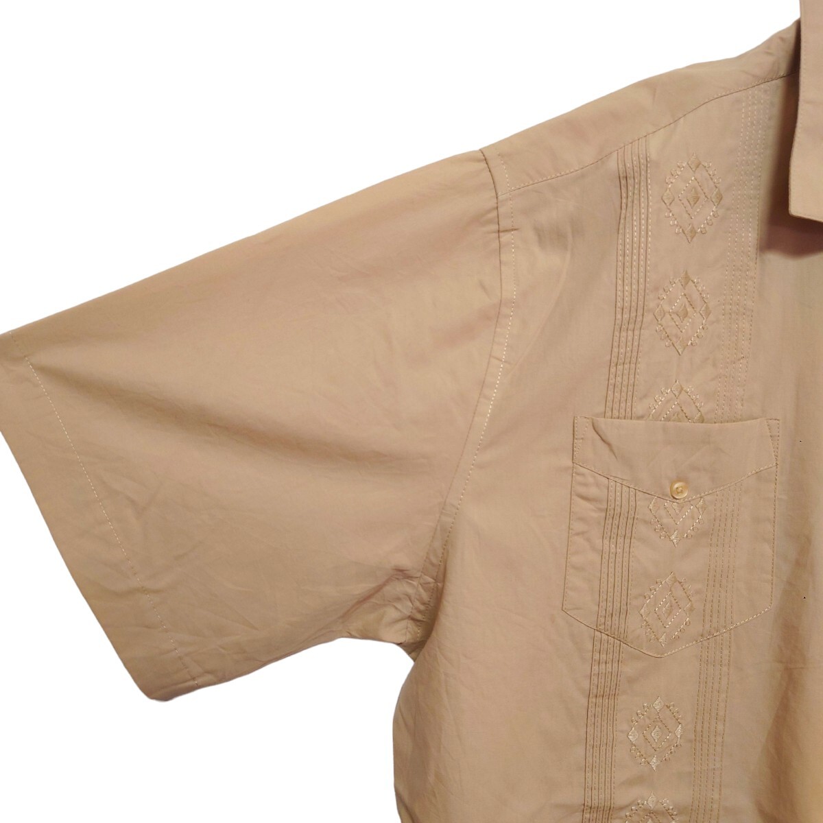 キューバシャツならではのラインデザインに、フロントに立体装飾刺繍、開襟タイプの人気デザインのアイテムです。