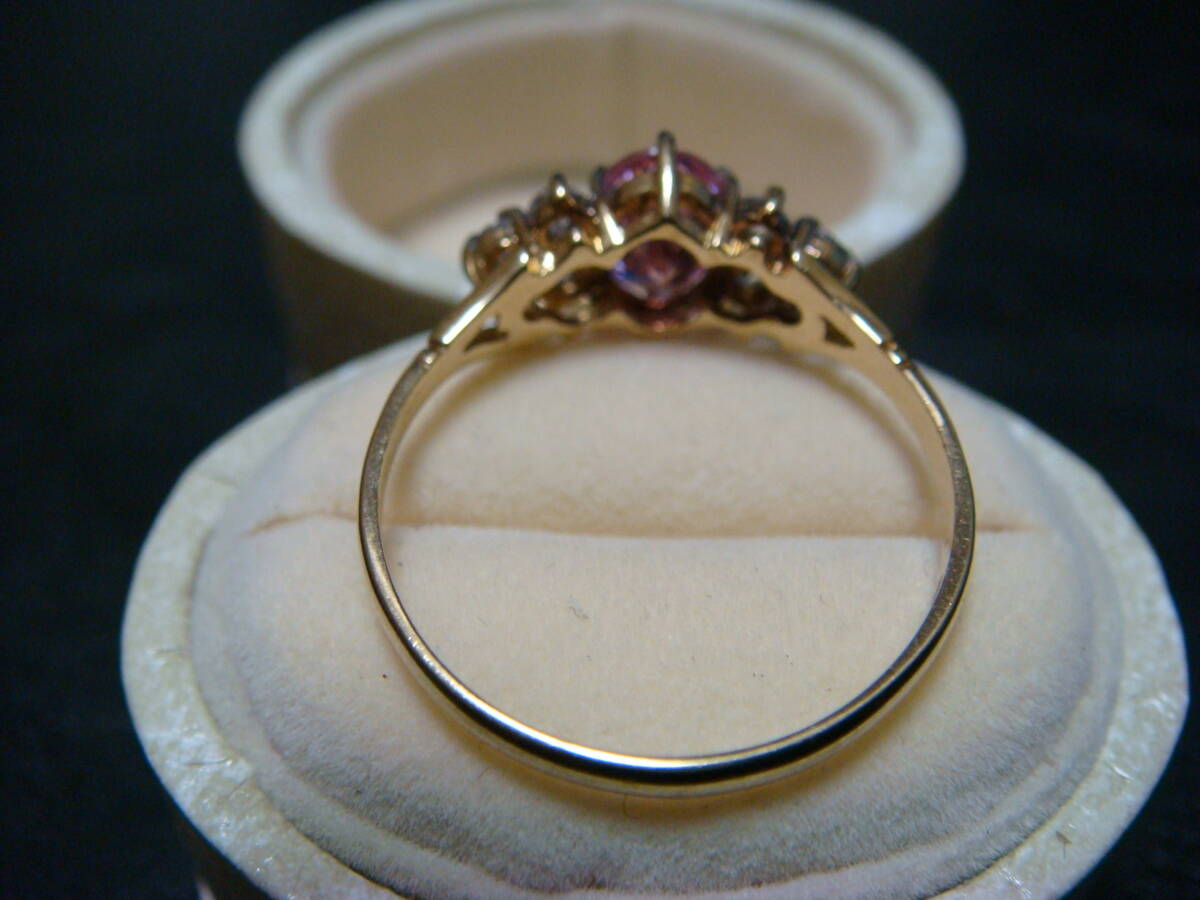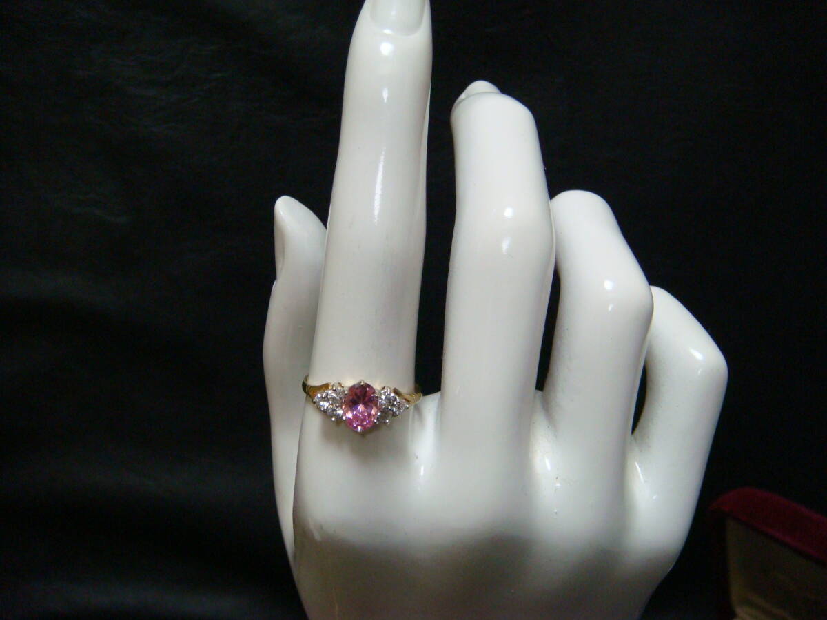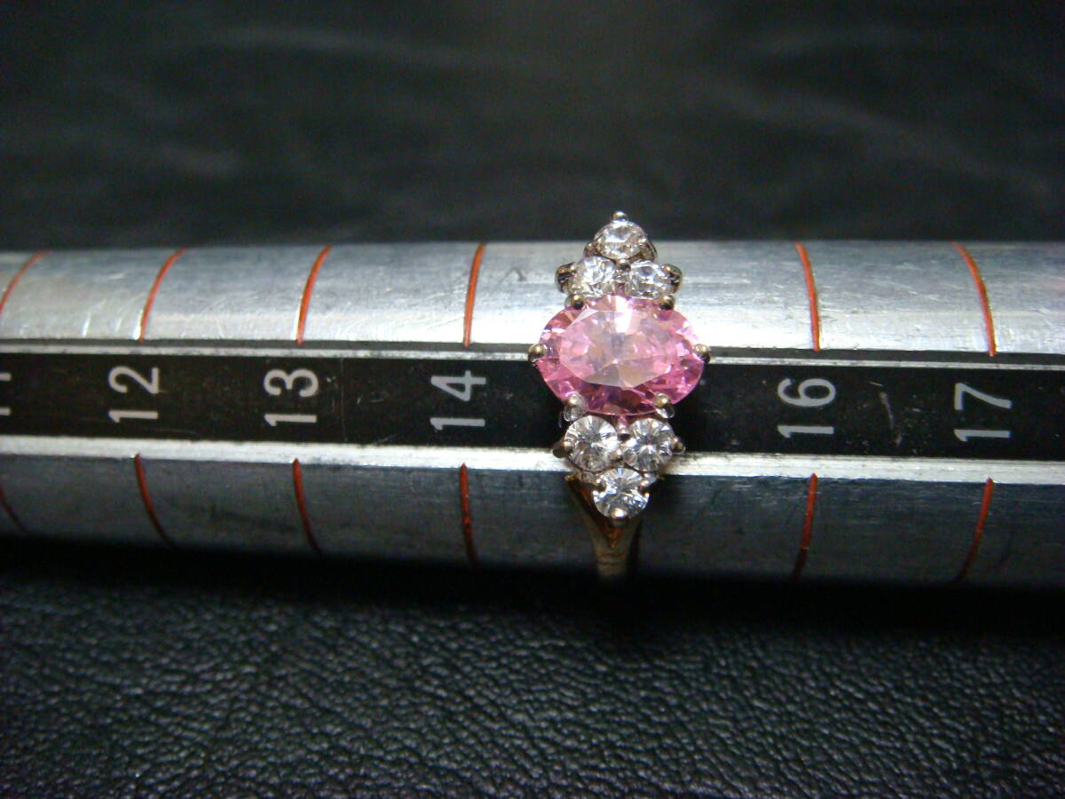 ◇英国 アンティーク ピンク石 透明石 リング 9金 375◇