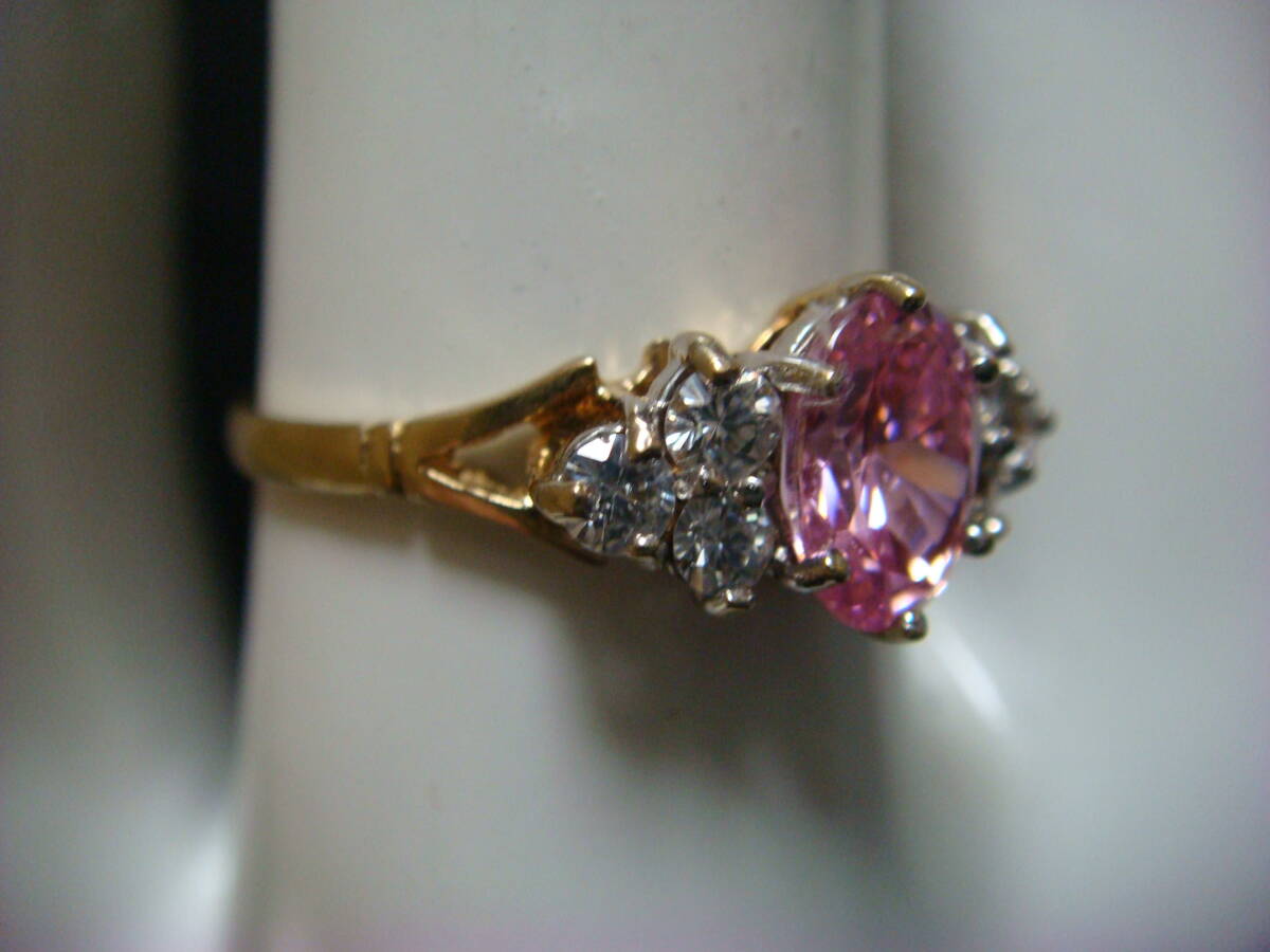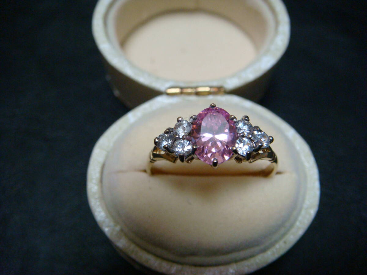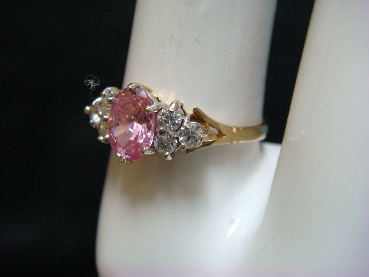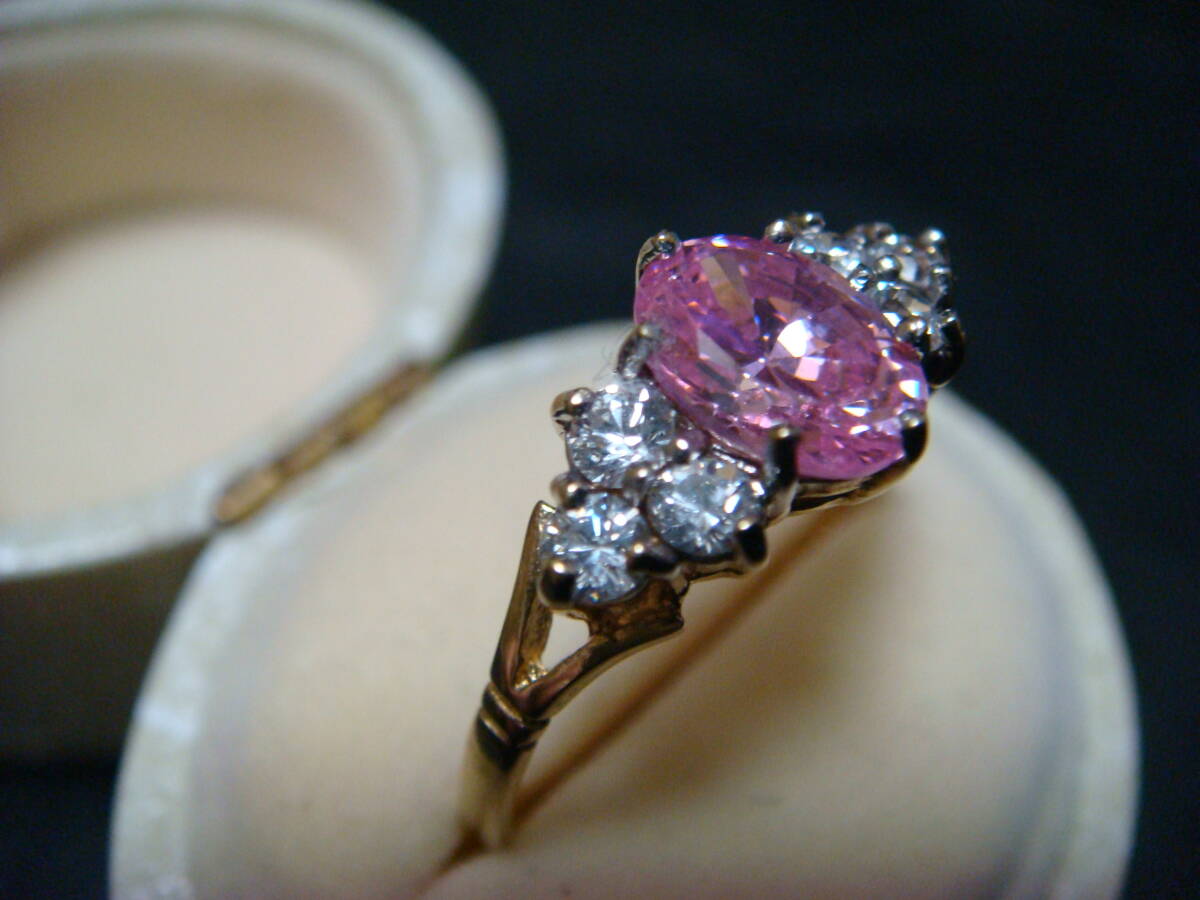 ◇英国 アンティーク ピンク石 透明石 リング 9金 375◇