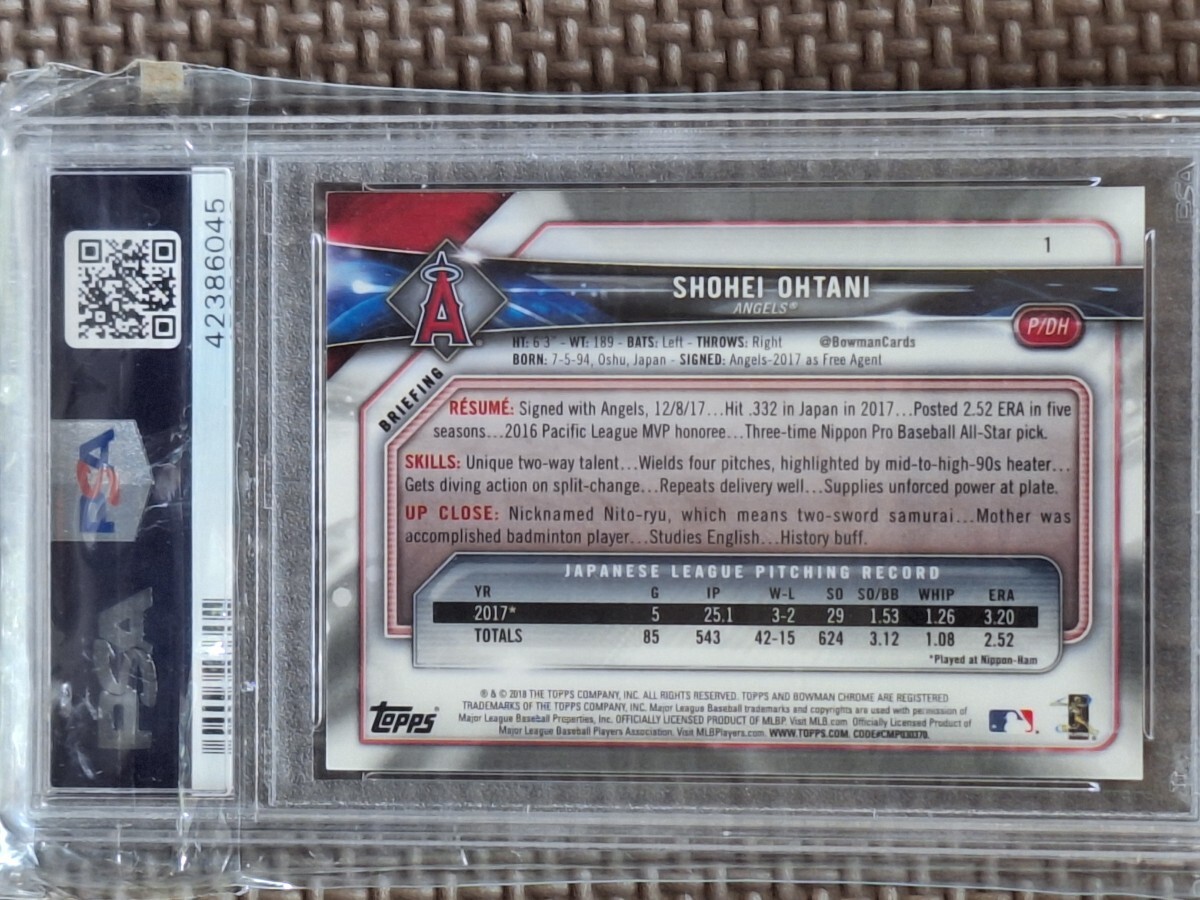 2018 Bowman Chrome #1 SHOHEI OHTANI RC Los Angeles Angels Los Angeles Dodgers Hokkaido Nippon Ham Fighters PSA 9