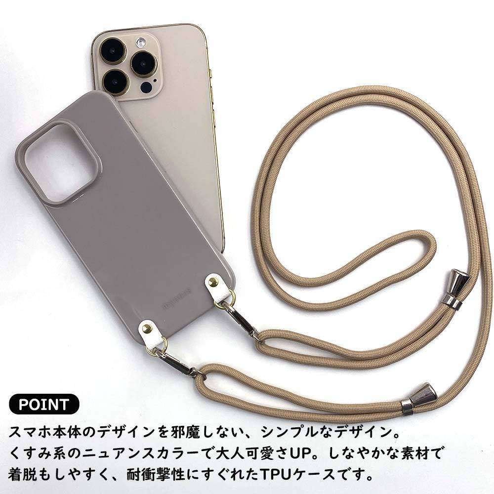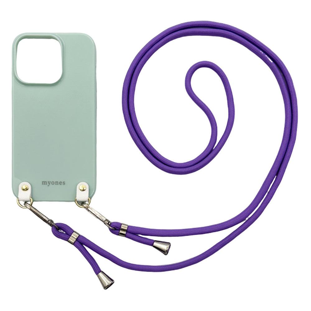 iPhone14 Pro Max (くすみグリーン/パープル)ひも TPU ストラップ 肩掛け 首かけ 斜めが スマホケース かわいい