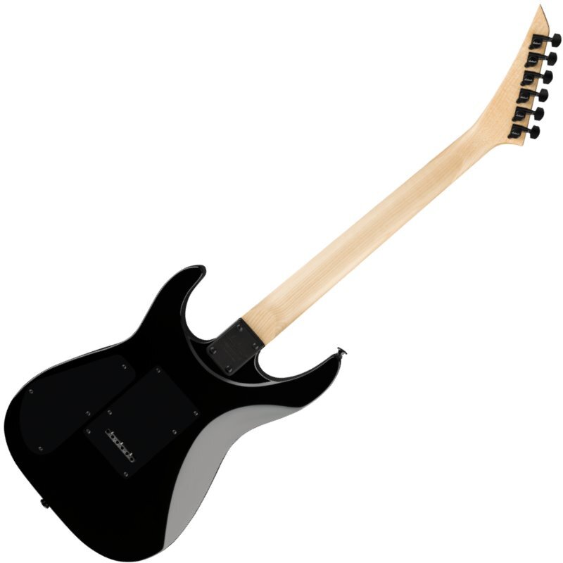 2点支持Fulcumシンクロナイズドトレモロ、スタンダードストラップボタン、ダイキャストチューニングマシンなど、オールブラックのハードウェアも特徴です。