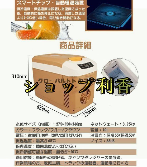 10L冷蔵庫 冷温庫 周囲温度より22℃低い 2電源式 AC100~120V DC12V/12V 小型 コンパクト 家庭&車用 カー トラック 保温保冷ボックス D192