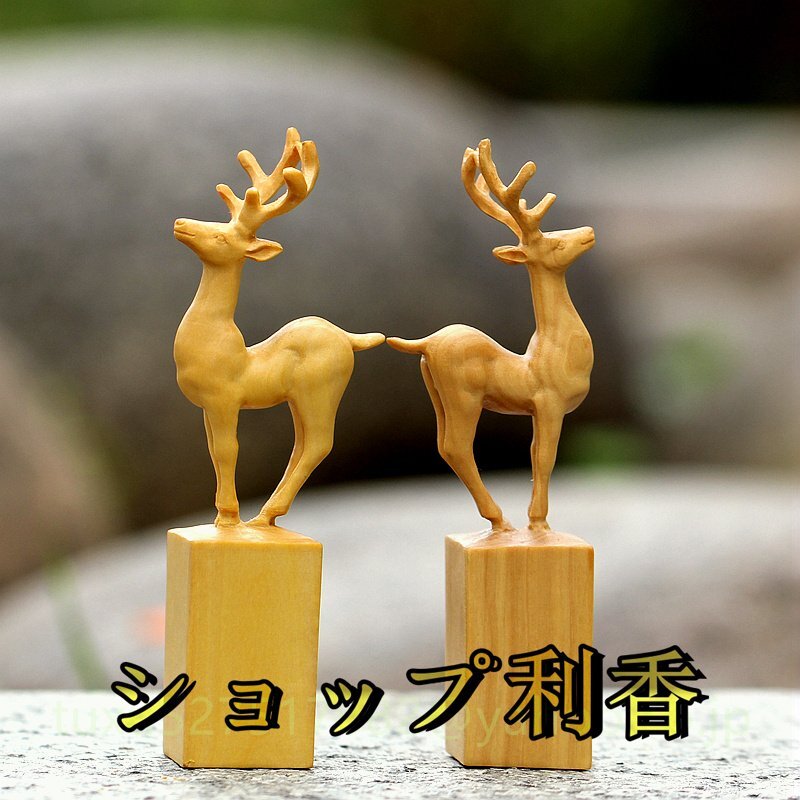 鹿 置物 シカ 木彫り 彫刻 工芸品 美術品 精密細工