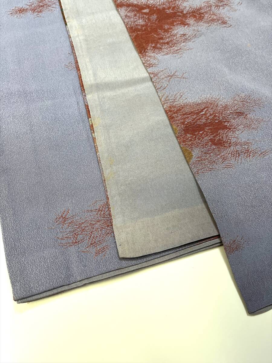 リサイクル着物 お召 2枚まとめて 芥子色 縫い取りお召 無地 漆 灰青紫 青灰 菊 金属糸