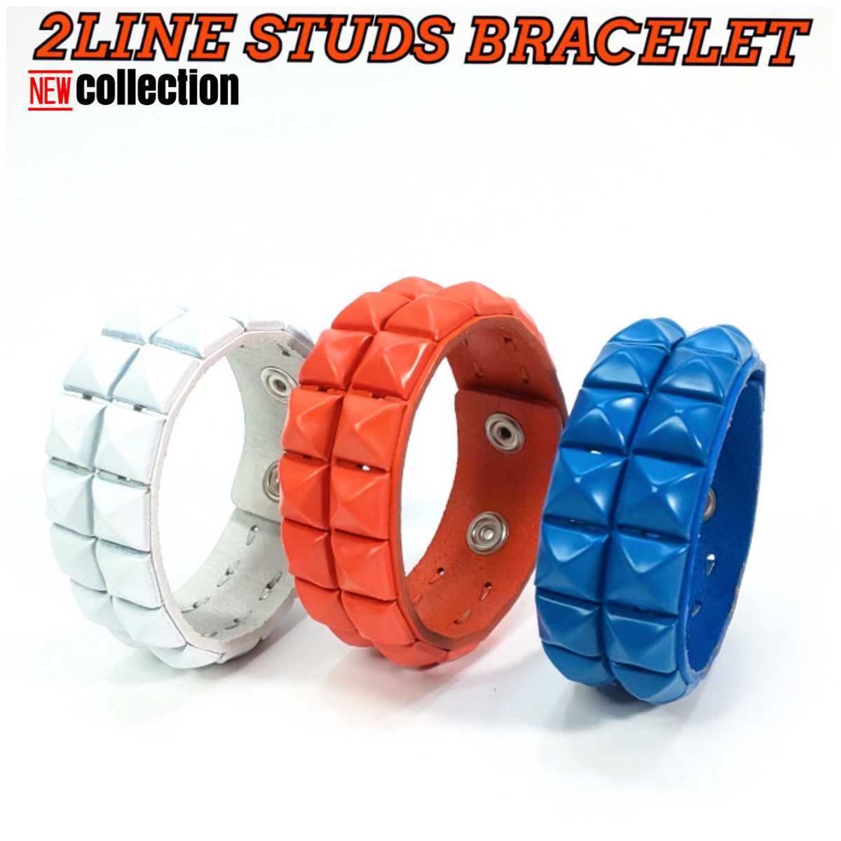 ブレスレット 2連カラースタッズ 本革ブレスレット【新品未使用】のご紹介です